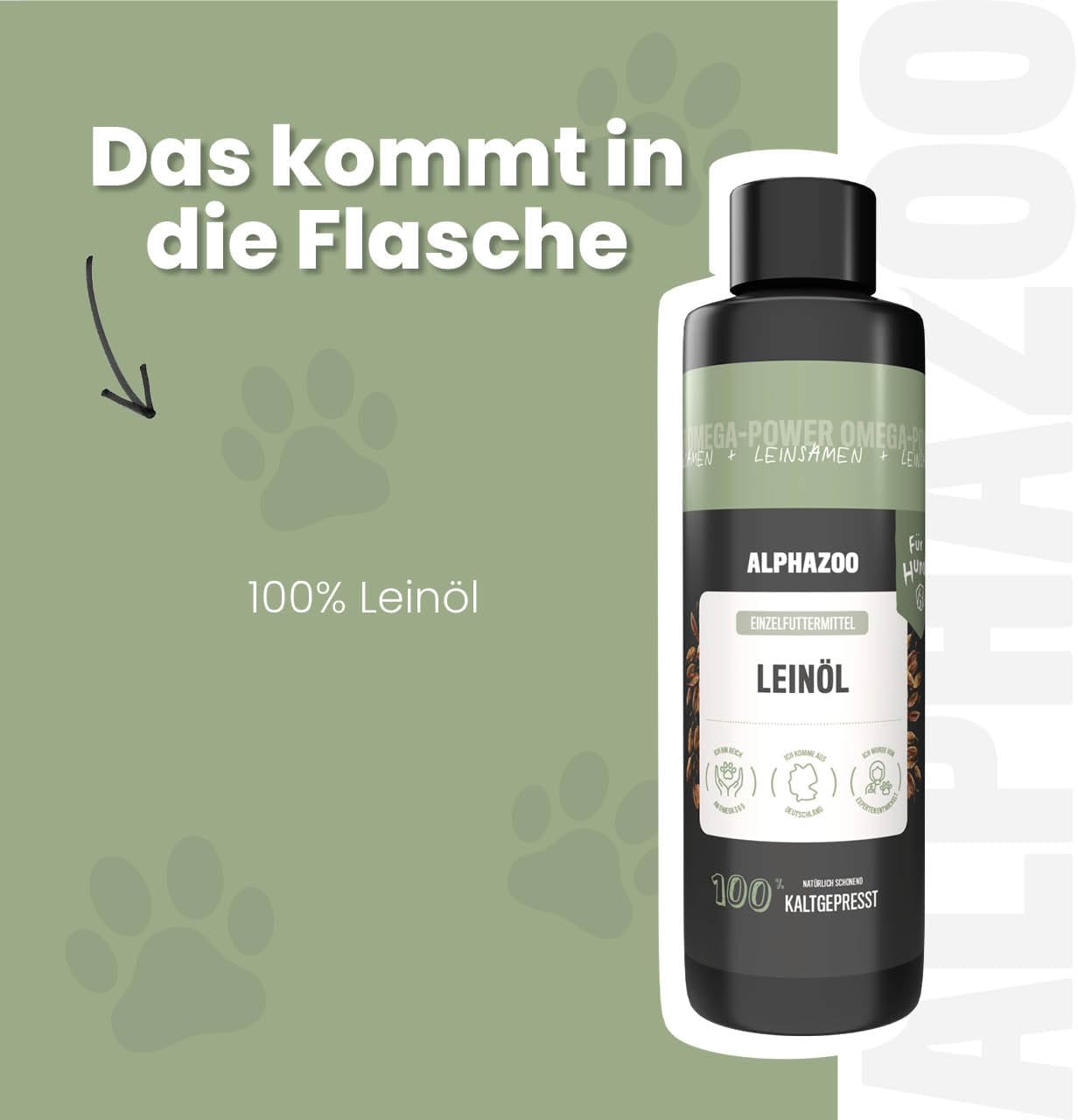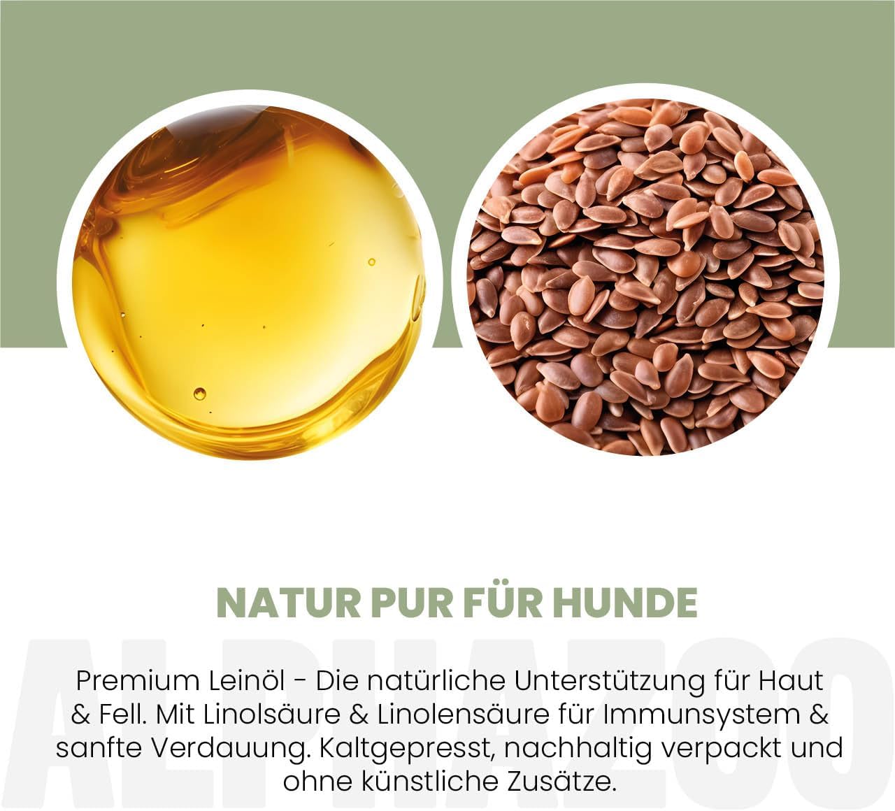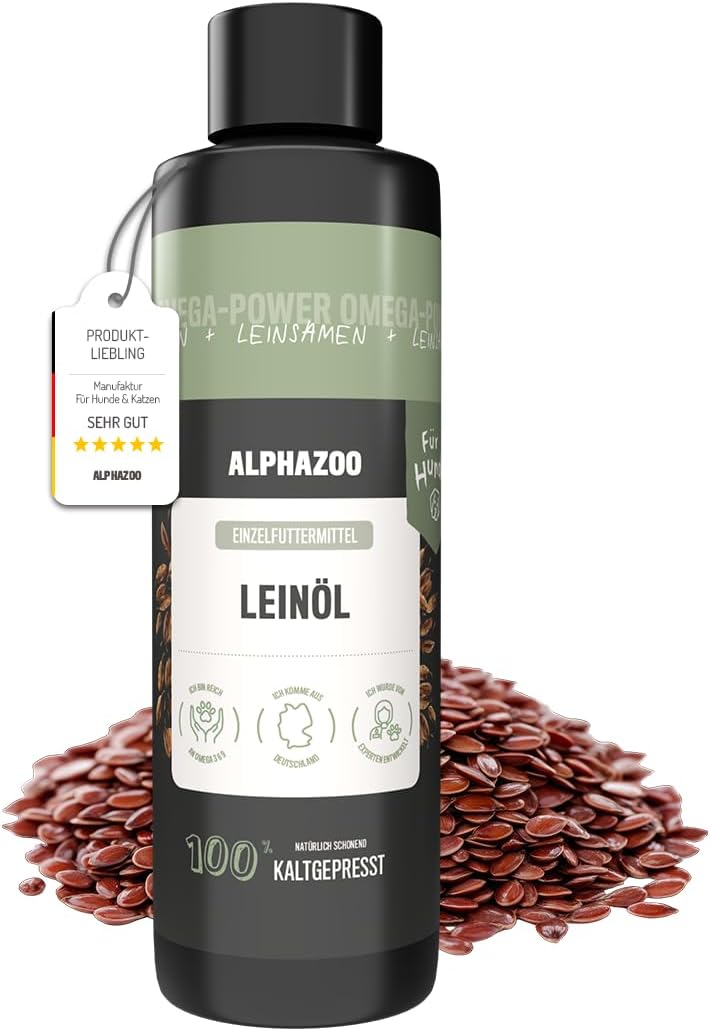alphazoo Премиум ленено масло за кучета 100 мл – Студено пресовано кучешко масло с Омега-3 и Омега-6 мастни киселини за грижа за козината и храносмилателна подкрепа