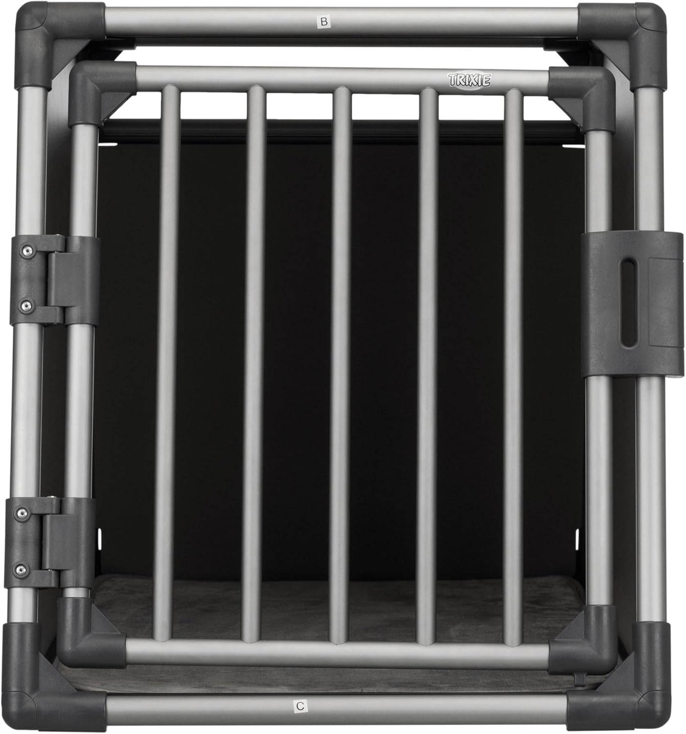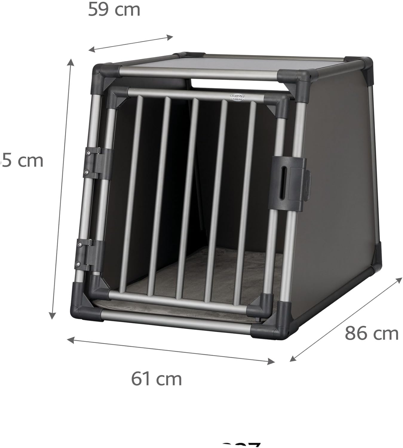 Алуминиева кутия за транспортиране на кучета TRIXIE, ML: 61 x 65 x 86 см, графит, безопасно закопчаване, велкро лента на пода, стабилна и тиха, неплъзгаща се подложка, 39337