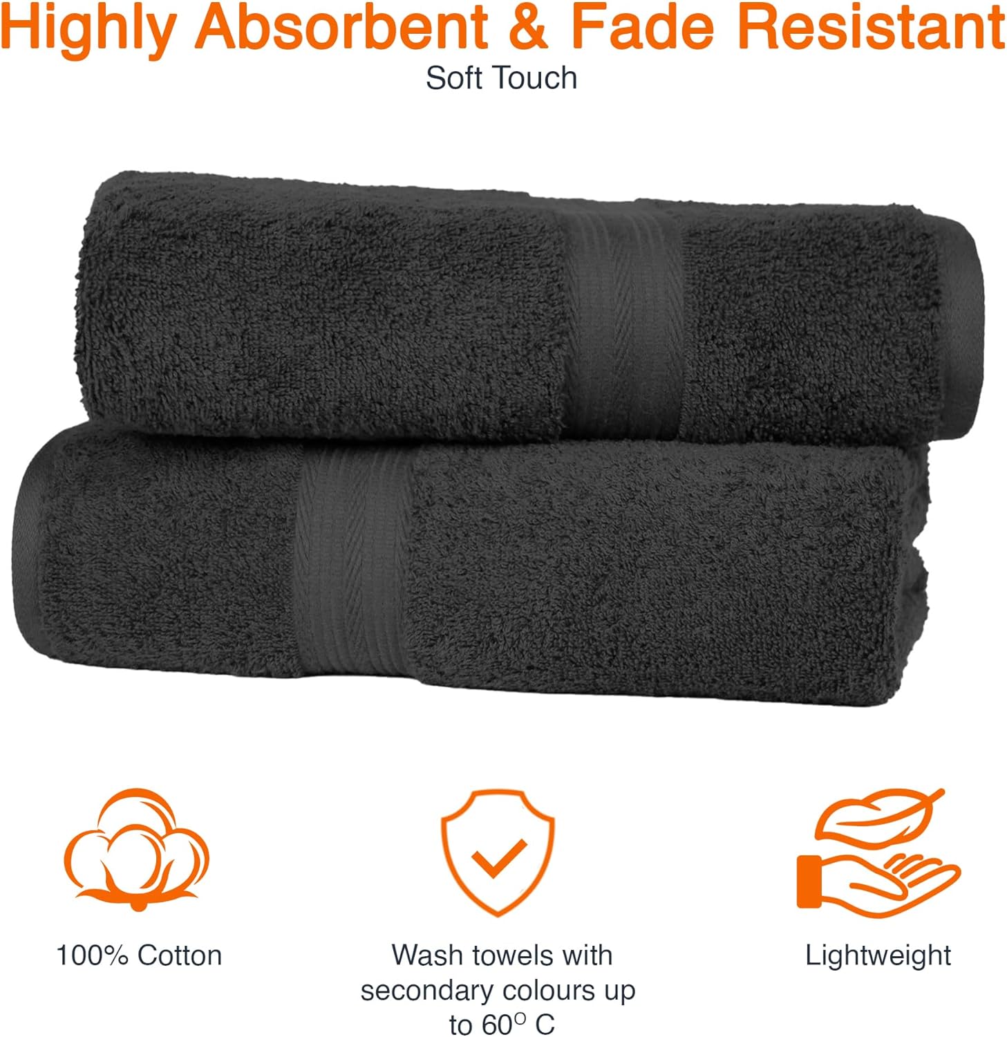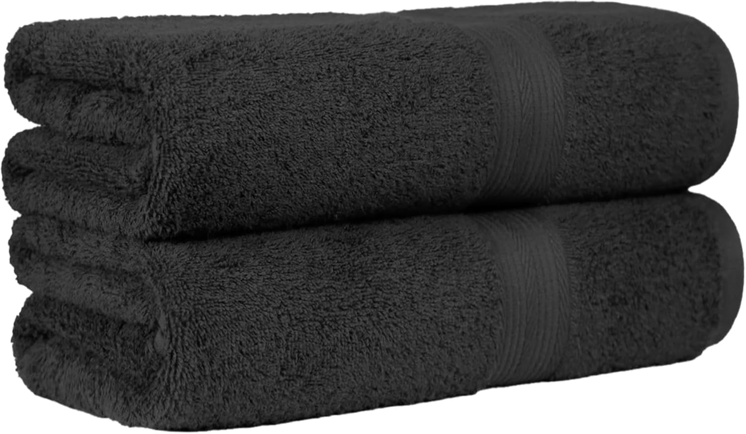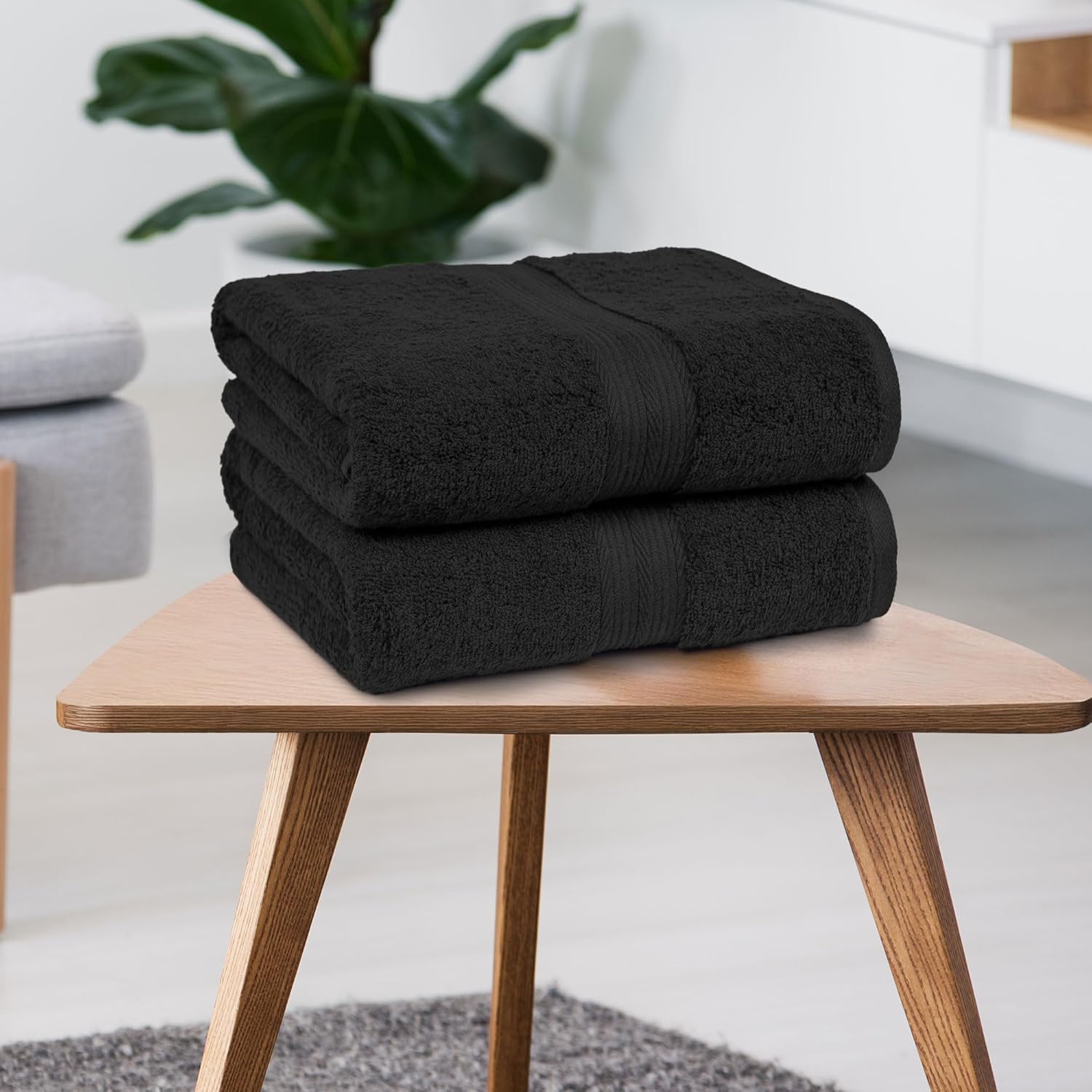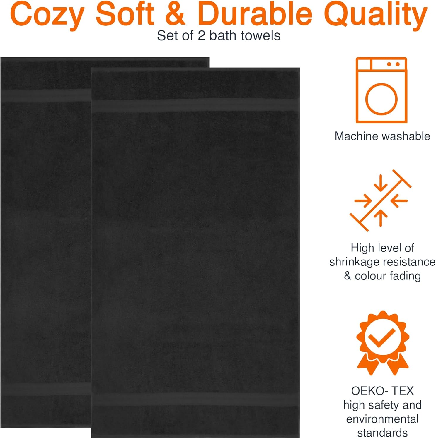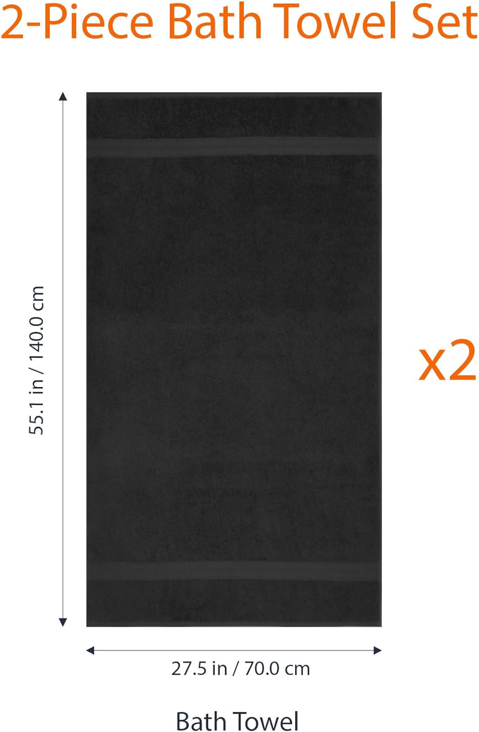Amazon Basics 2 бр. кърпи за баня, цветни, 100% памук, меки, абсорбиращи, 70 x 140 см, черни