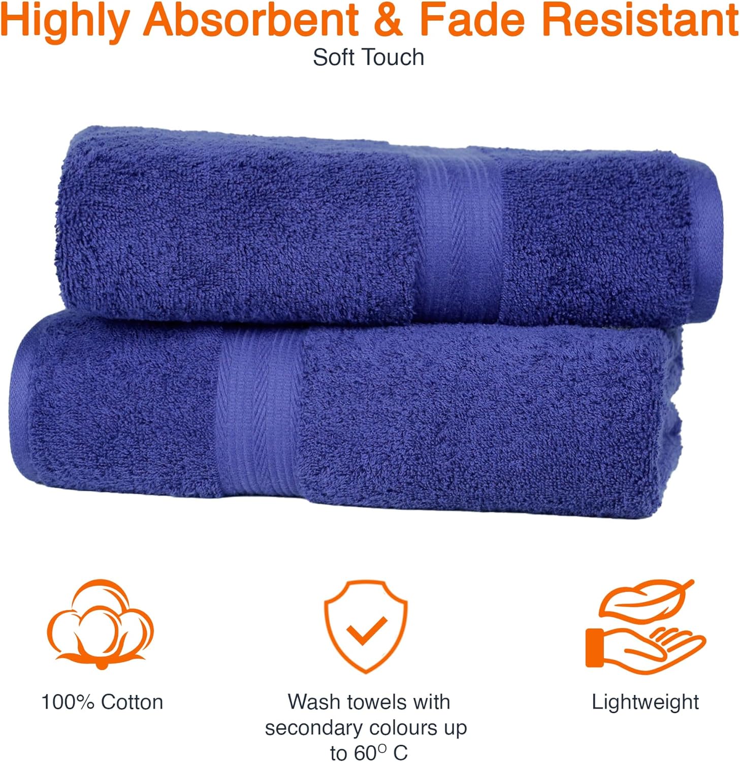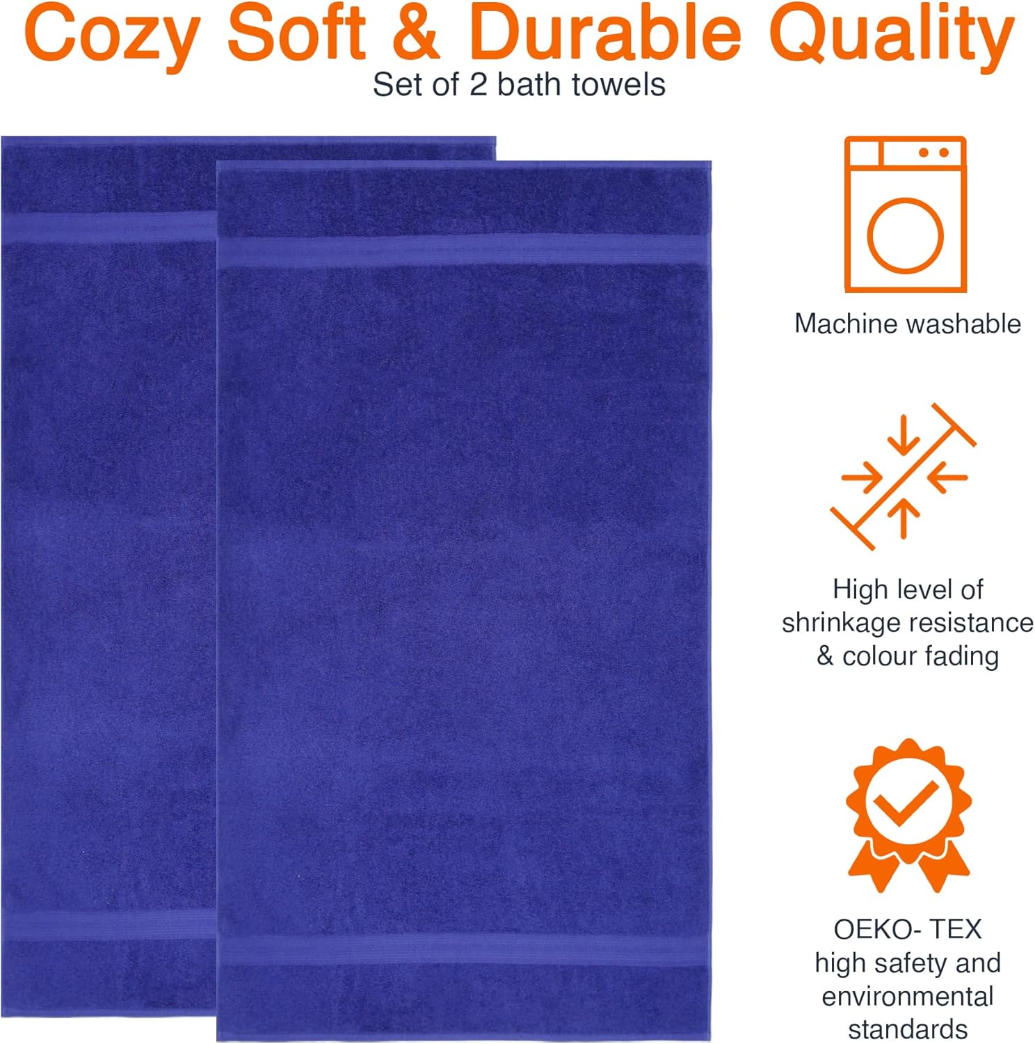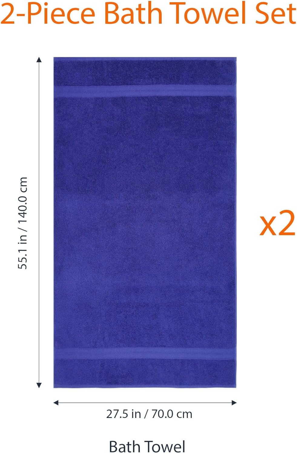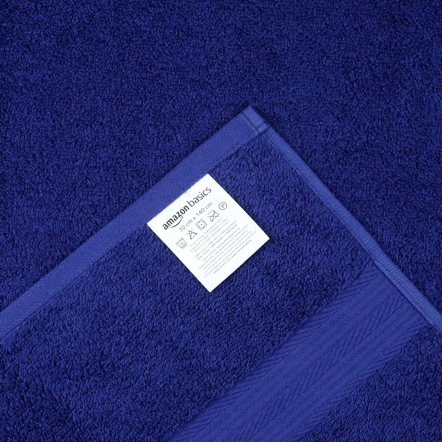 Amazon Basics 2 хавлии за баня, устойчиви на избледняване хавлии за баня от 100% памук, меки абсорбиращи, пакет от 2 (70 x 140 см), кралско синьо
