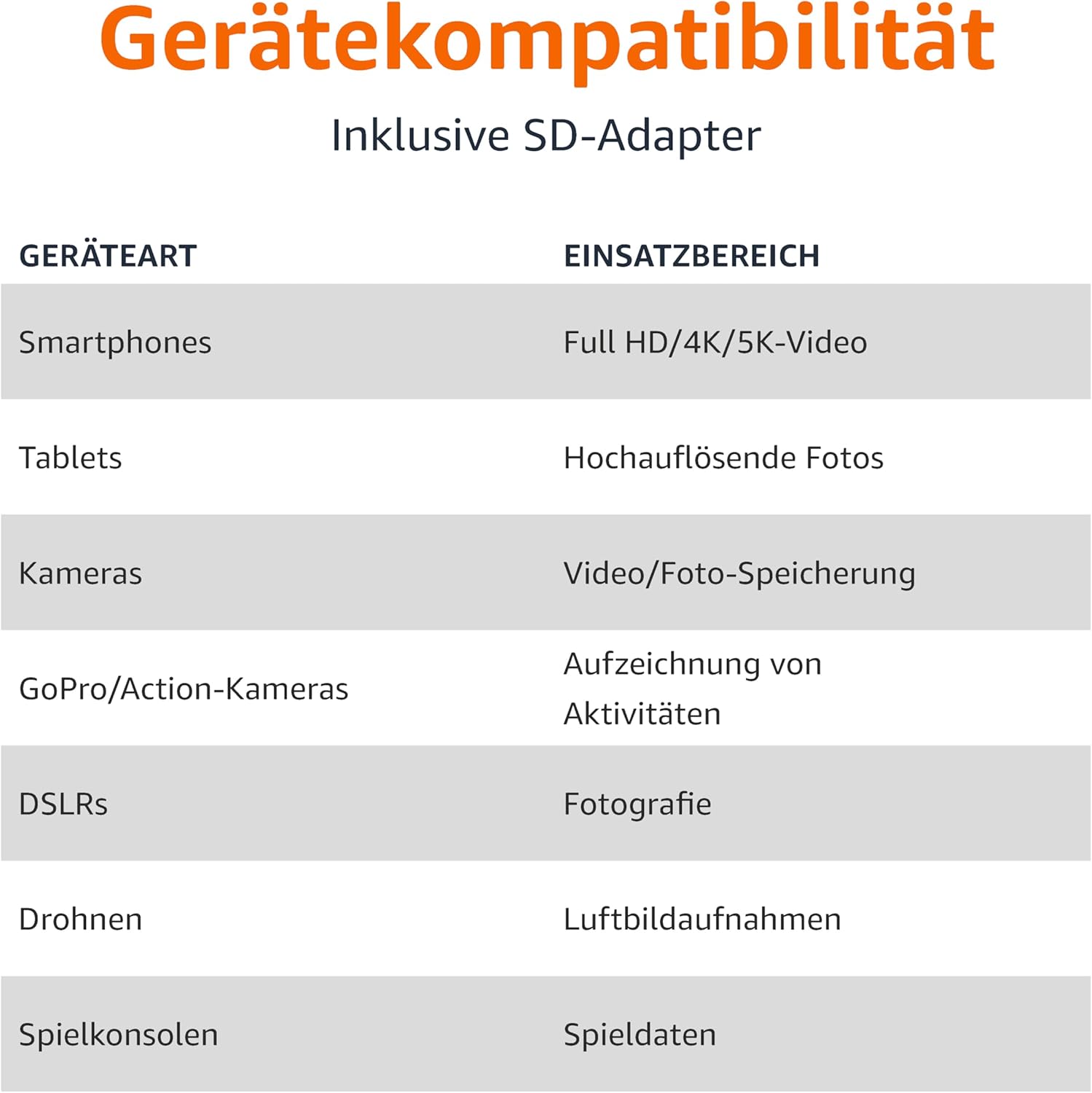 • Съвместима със смартфони, таблети, фотоапарати, GoPro/екшън камери, лаптопи, компютри, DSLR фотоапарати, дронове, игрови конзоли и други. Тази Micro SD карта не е съвместима с Nintendo Switch 2.