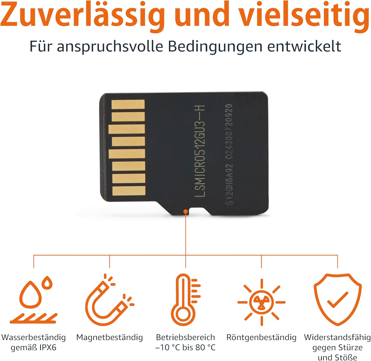 Amazon Basics 512GB microSDXC карта с адаптер - скорост на четене до 200MB/s - пакет от 1