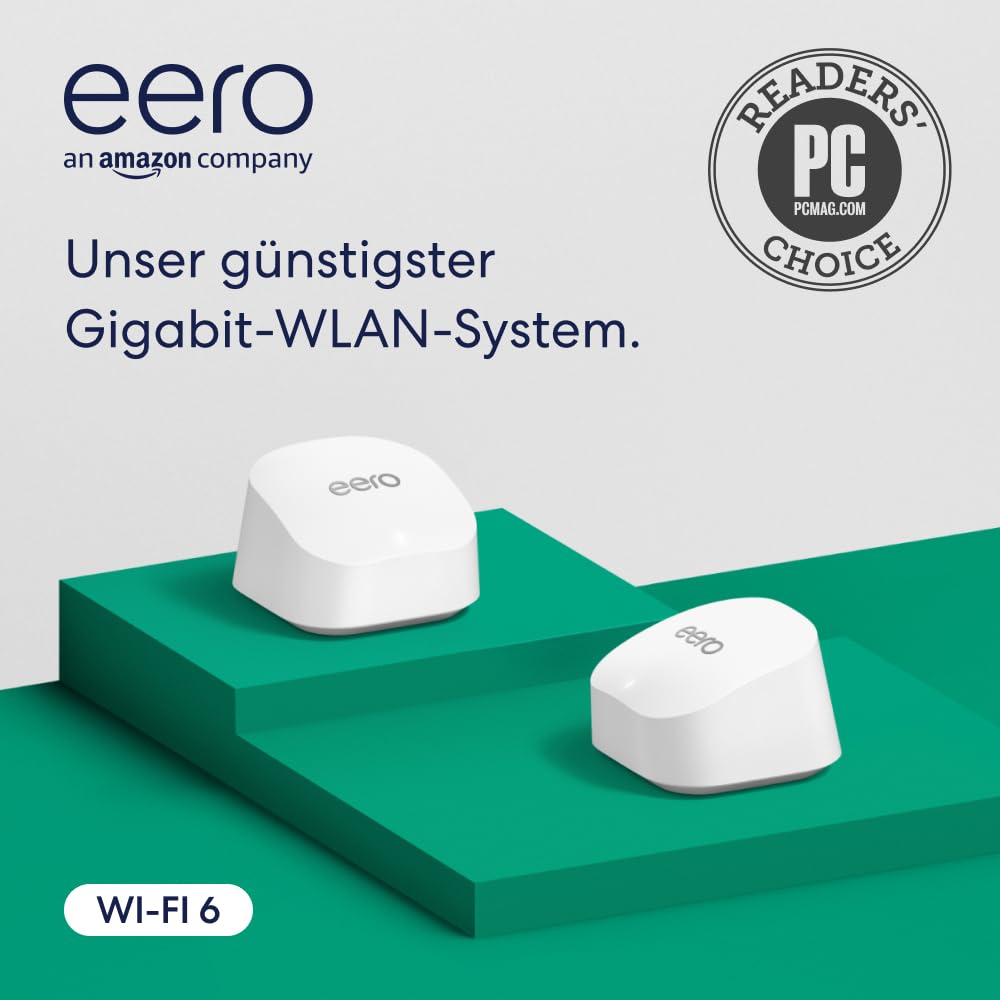 Amazon eero 6+ Mesh WiFi рутер | 1Gbps Ethernet | Покритие до 280 м² | За връзки с над 75 устройства | Двоен пакет | 2022