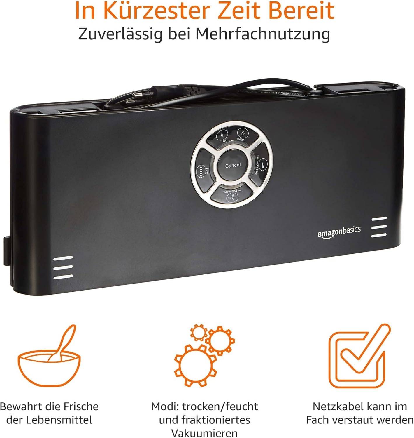AmazonBasics - Вакуумна опаковъчна машина, 30 см шев + ролка с вакуумна торбичка, черна