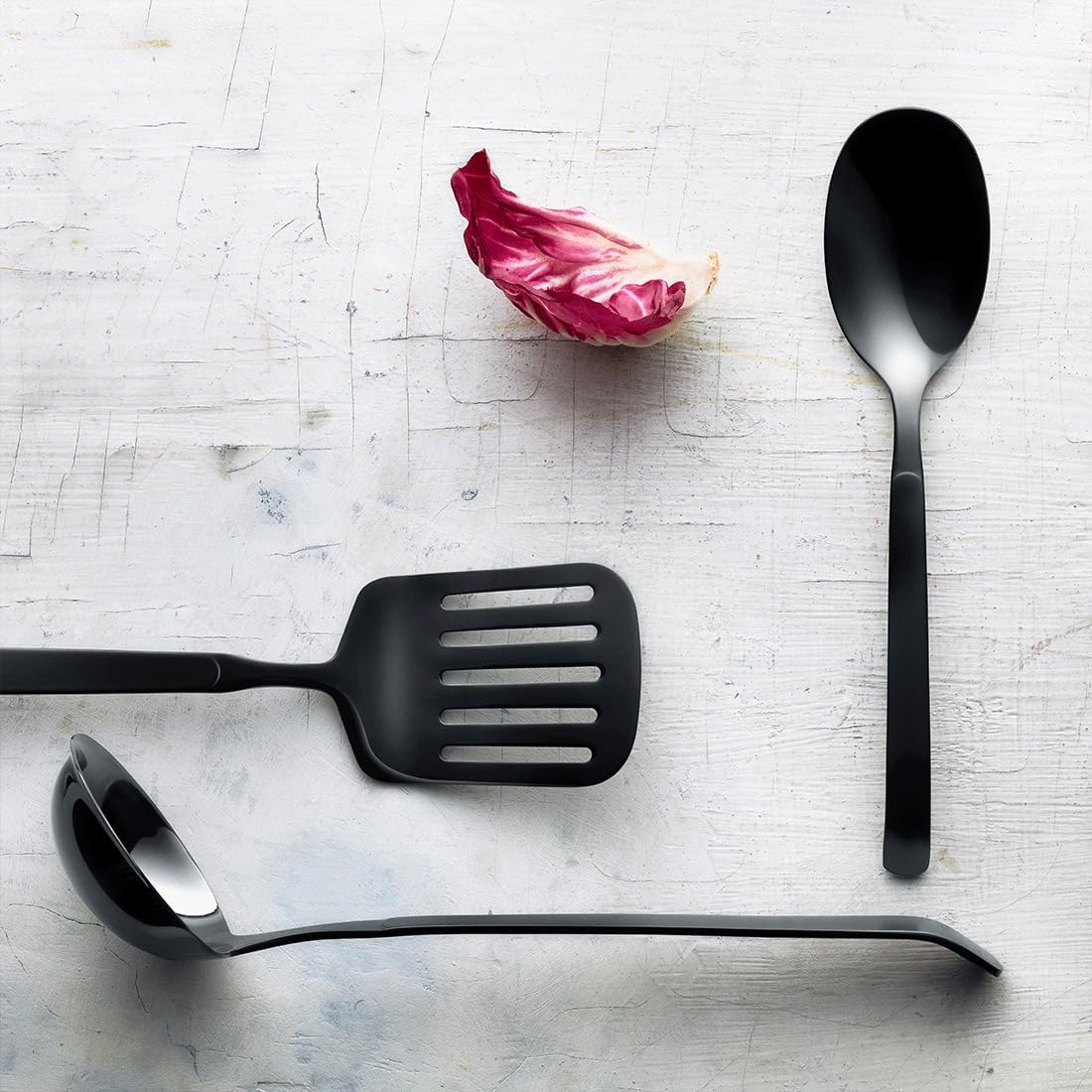 • КОЛЕКЦИЯТА ВКЛЮЧВА обръщатели/сервиращи плата, сервиращи плата, лъжици за жарен грил, лъжици за дресинг, сервиращи плата за порции, тесни сервиращи лъжици, решетъчни лъжици за бюфет, щипки за гурме, вилици за резба, щипки за сервиране, лъжици за спагети, универсални щипки, лъжици за торти, лъжици за сос, щипки за сервиране и малки вилици за салата.
