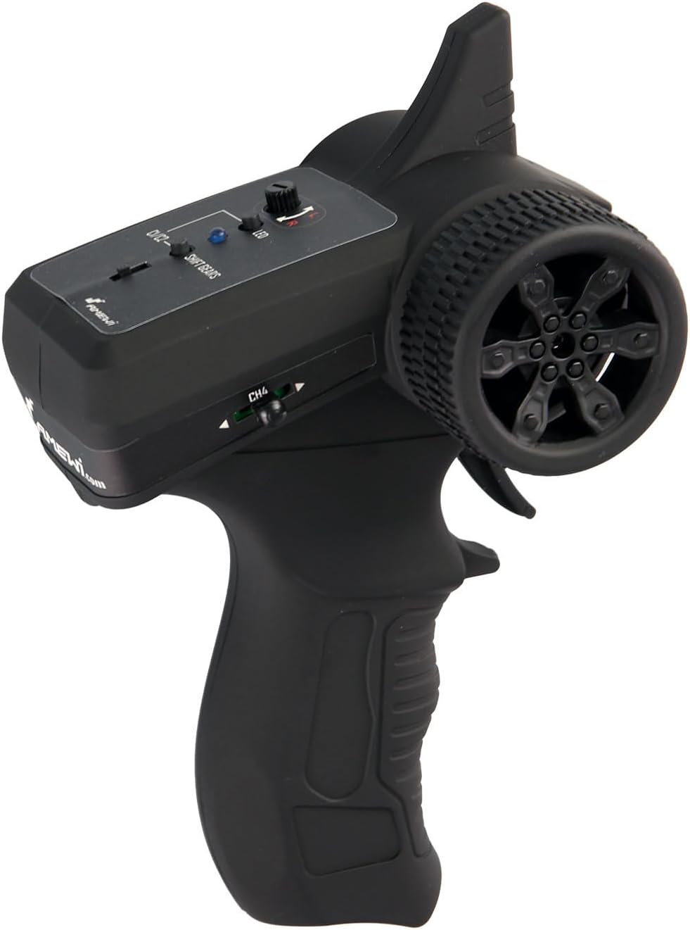 Scale: 1:16 Length: total 1050 mm, width: 140 mm, height: 170 mm. Weight (ready to ride): 1,400gBrake: ElectronicRegulator: Brushed, Motor: Brushed 280. Drive system: GimbalSteering Servo: MiniMain Material: ABS plastic and metalBattery: Li-Ion 2S 7.4V 500mAh, 4-pin HBX plug, 54x32x16mm, 44gDriving time: Up to 20 minutes, depending on riding style, maximum speed: approx. 8 km/h. Remote control: 2.4 GHz, range: approx. 20-30 meterCharger: USB, charging time: approx. 120 minutes