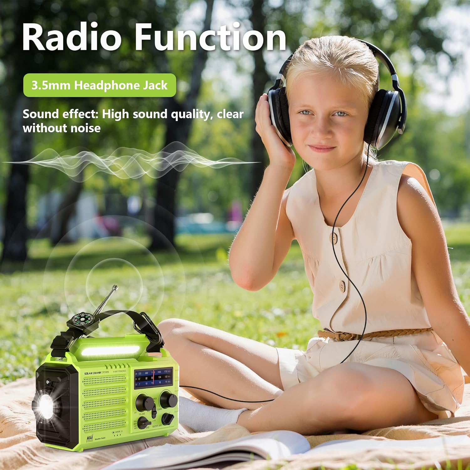 Natural powered with rotating solar panel - for easy charging of the internal lithium-ion battery with direct strong sunlight. Dynamo hand crank with own power supply - to generate power yourself when you are not at a power source. Built-in 4000 mAh rechargeable battery - can be charged via solar panels, crank or socket. Micro USB input - connect the included micro USB cable to the correct adapter (not included) when The internal battery Charging. 3 x AAA batteries – If you want to use this energy mode, please first slide the "Power" button on the front to the side "AAA". USB phone charger - for charging your digital devices in emergencies. SOS alarm sound - loud enough to locate your position, useful in an emergency. Brighter 5W camping torch - to have a comprehensive view and easily adjust. to findfindfindfind.> 6 LED reading lamp - to provide enough light for reading or playing. AM, FM and shortwave radio - suitable for emergency preparedness, daily indoor use or outdoor activities such as camping, backpacking, boating, picnic. Adjustable hidden antenna - for improved signal reception when you are in the middle of nowhere.