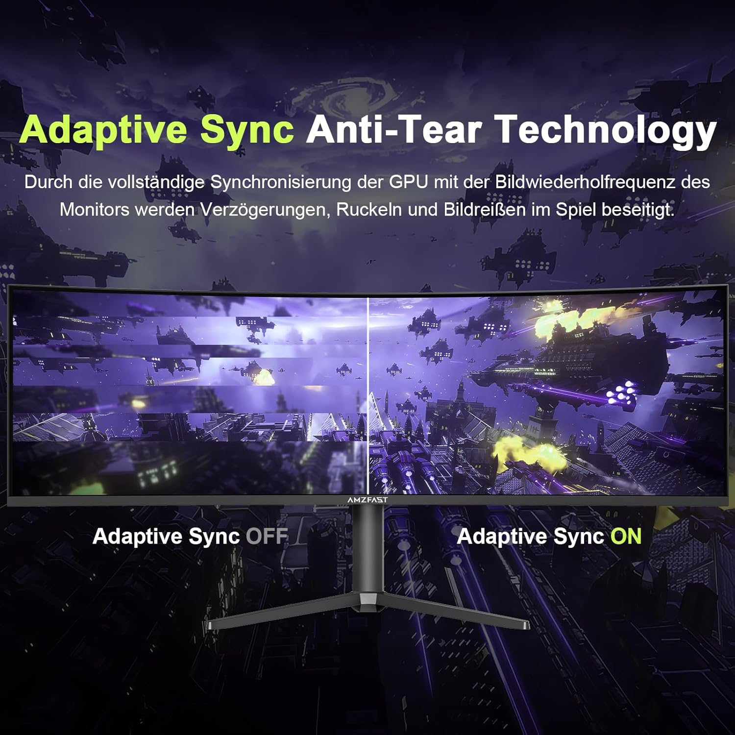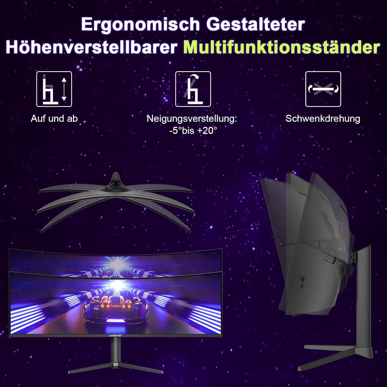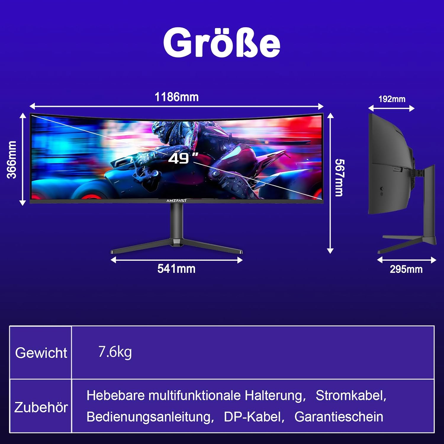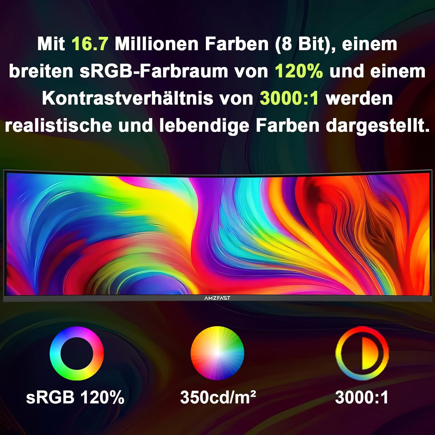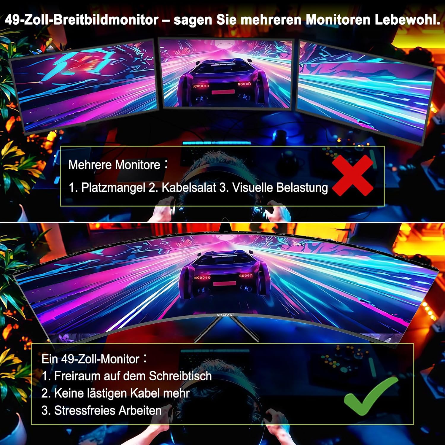 Amzfast 49-инчов извит монитор 120Hz, DQHD (5120x1440), 32:9 ултраширок екран за компютър, грижа за очите, 1Ms MPRT, 1500R, адаптивна синхронизация, sRGB 120%, HDMI 2.0 x 2/DP 1.4 x 2, VESA 75x75, Pip/PBP, AZMG49C7U