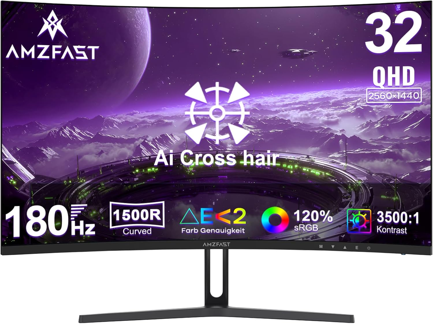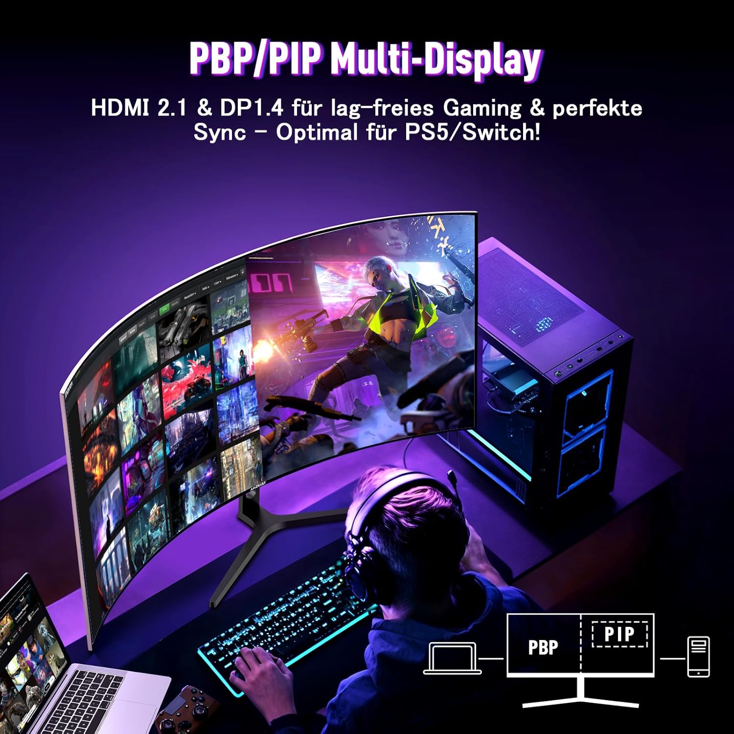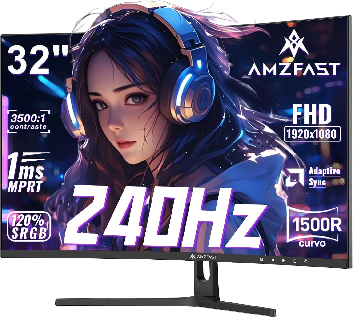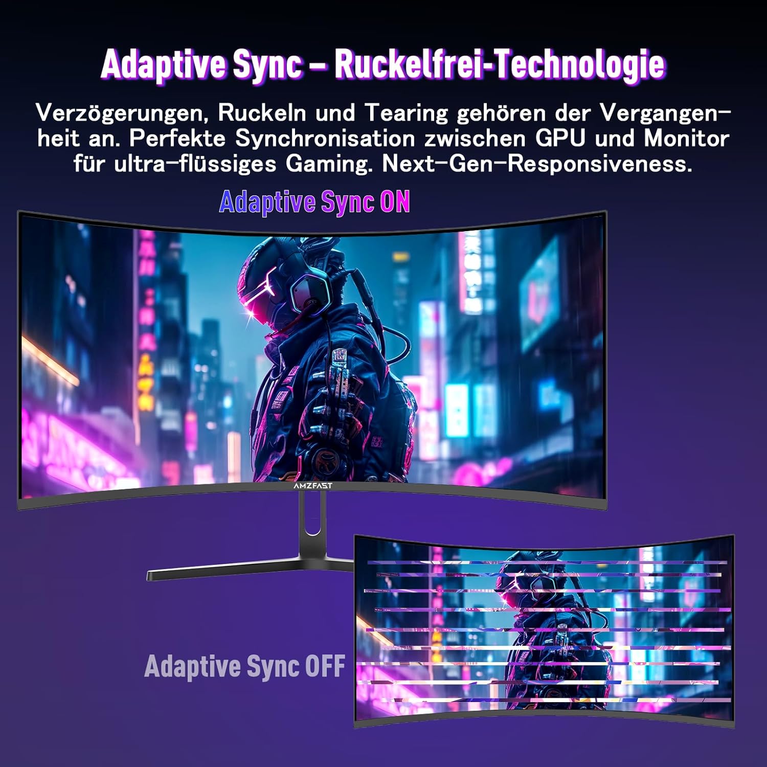 Amzfast извит геймърски монитор 34 инча, 240Hz, UltraWide QHD (3440x1440), 21:9, Eyes-Care, HDR, 1 ms MPRT, Adaptive Sync, sRGB 130% / DCI-P3 98%, HDMI 2.1*2, DP 1.4*2, VESA 75x75, PIP/PBP, AMZG3