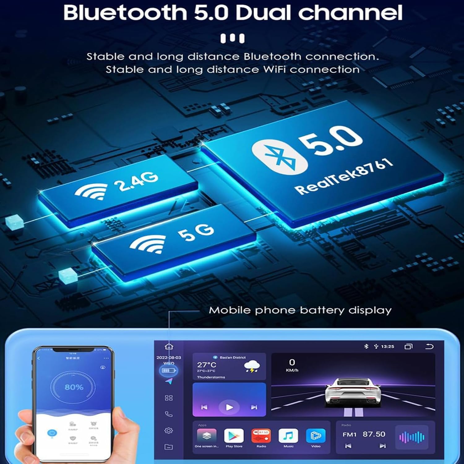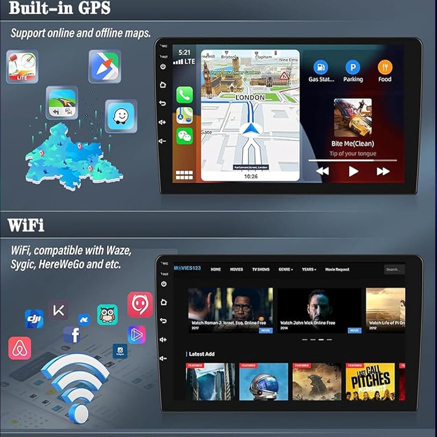 • [Bluetooth & 4G 5G]: Това автомобилно радио има вграден WiFi, който ви позволява да сърфирате в интернет и да изтегляте хиляди приложения от Play Store. Поддържа управление от волана. Поддържа Bluetooth телефонен указател с функция за търсене по име и директно показване на името на обаждащия се. Можете да гледате предавания на живо, да слушате музика онлайн, да играете игри и да гледате филми.