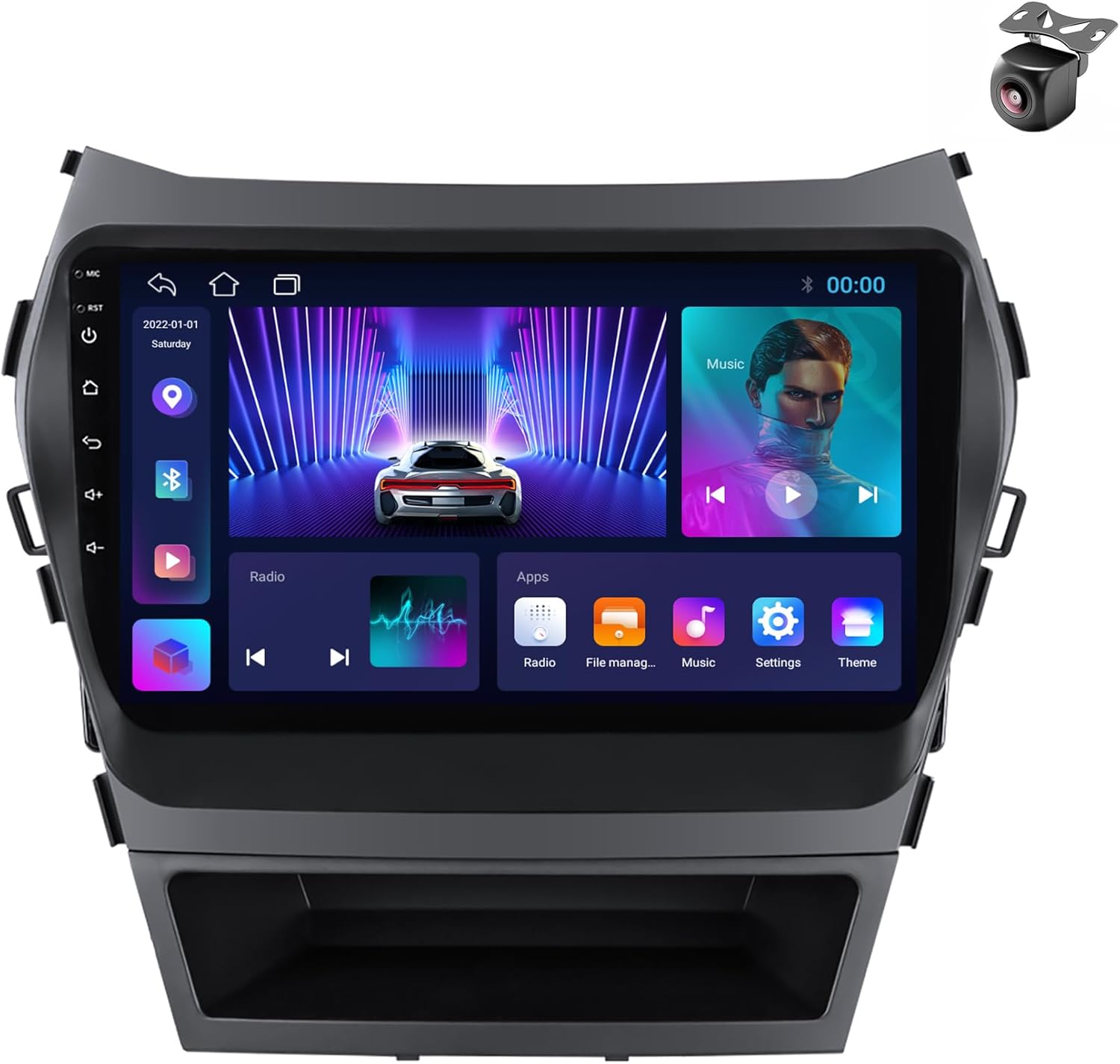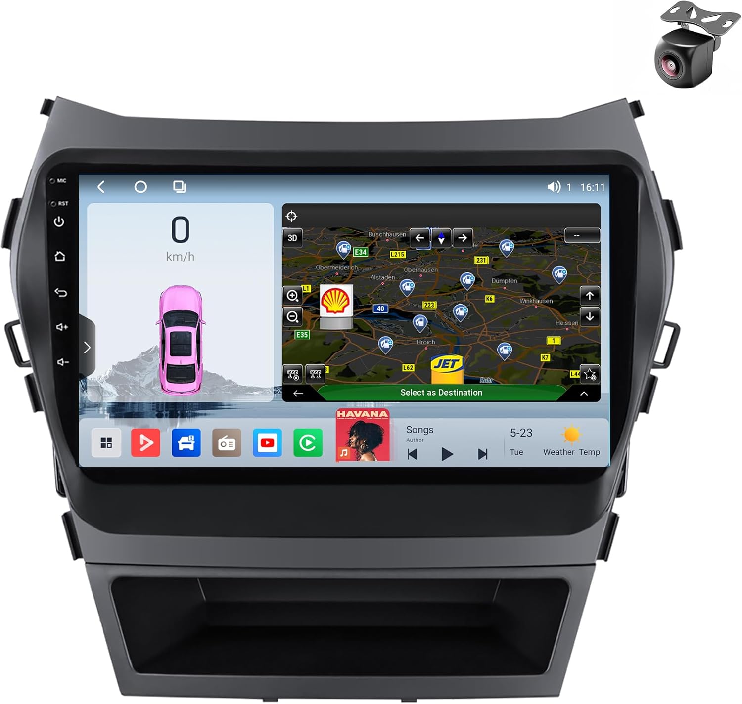 Android 14 автомобилно радио за Hyundai Ix45 Santa Fe 2013 2014 2015 2016 2017 GPS навигация 9-инчов капацитивен сензорен екран автомобилна стерео система с радио SWC FM RDS WiFi Carplay Android автомобил (M400S 8-ядрени 4+64G)