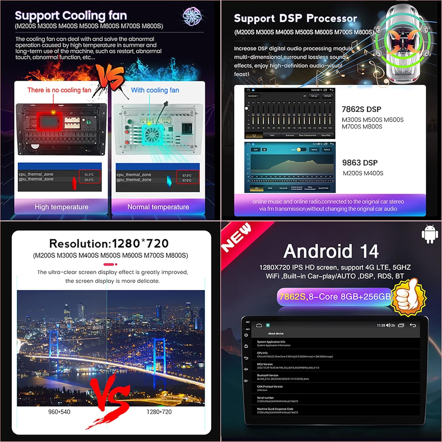 Features: built-in speaker / microphone / WiFi function / steering wheel support / 3G/4G network support (M200S-800S)