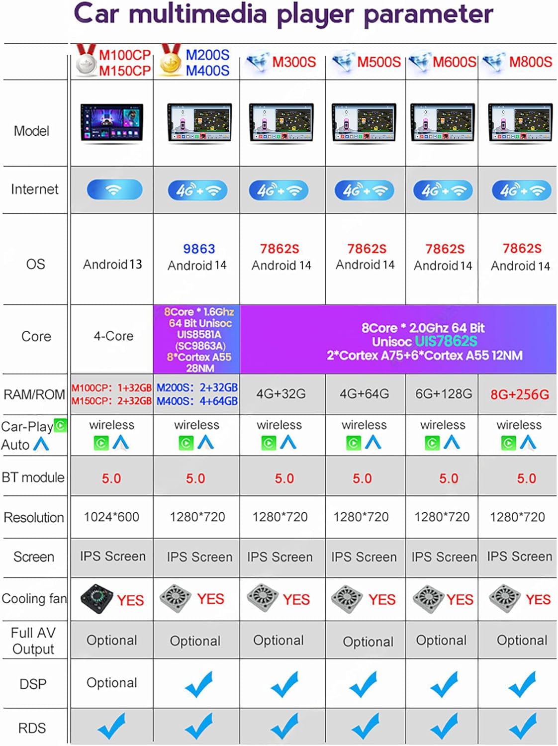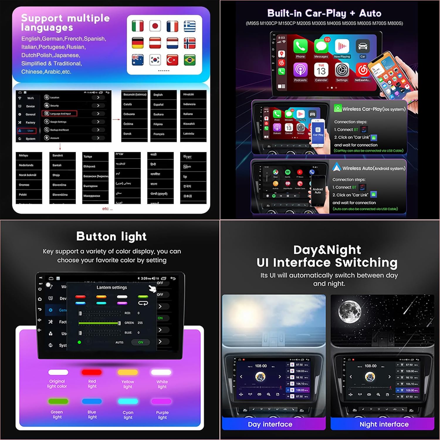 Car-play: wired and wireless support (M200S-800S).