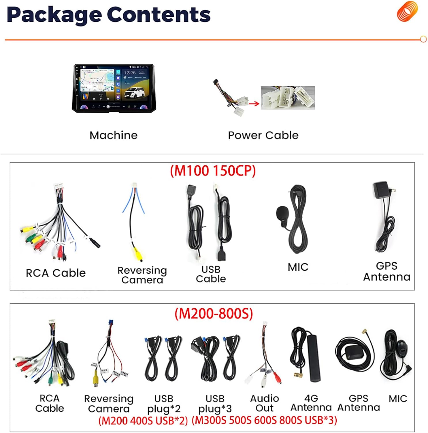 Features: built-in speaker / microphone / WiFi function / steering wheel support / 3G/4G network support (M200S-800S)
