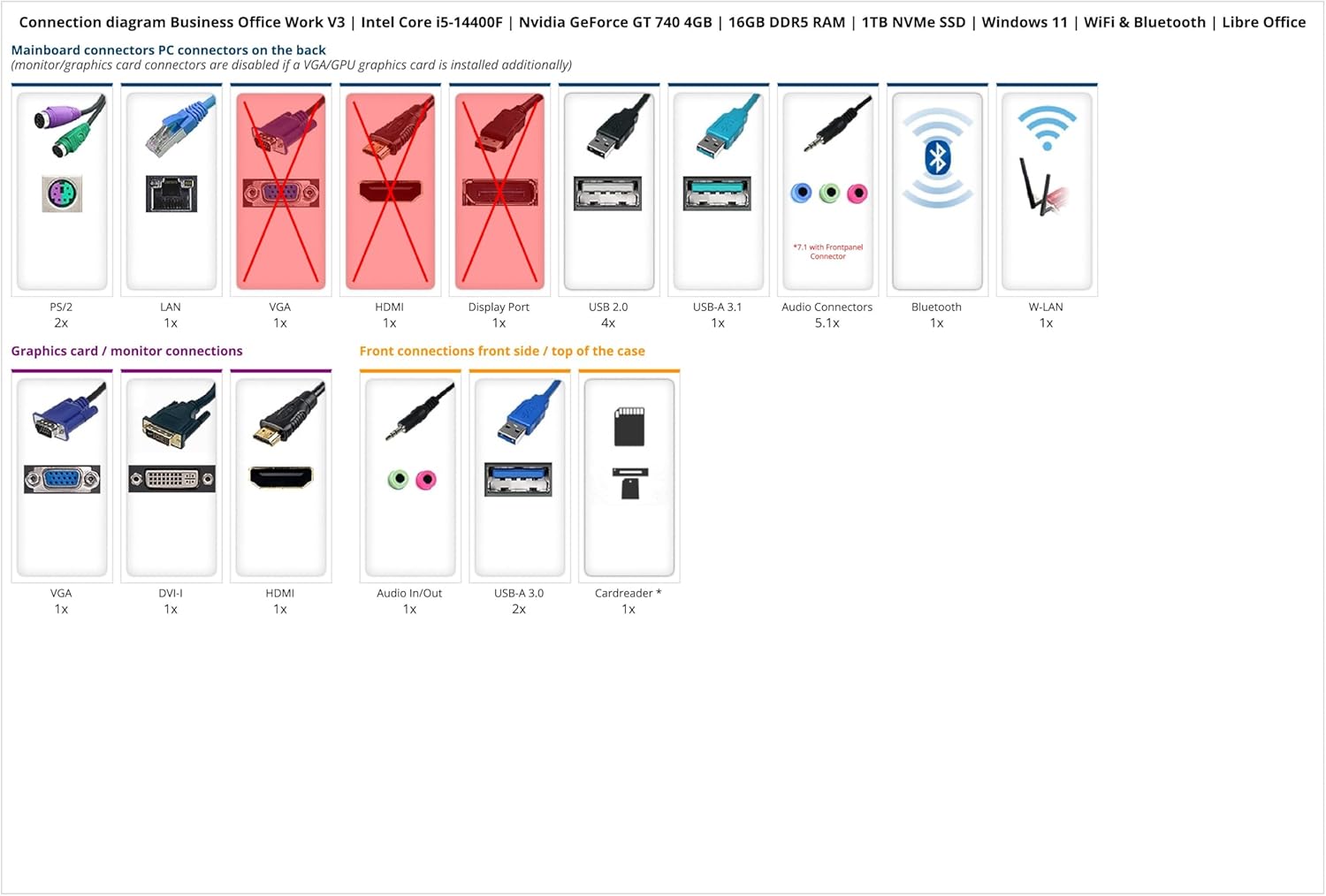 Software-Extras | Du bekommst von uns LibreOffice mit Writer | Calc | Impress | Draw | Base | Math vorinstalliert auf dem Rechner. |