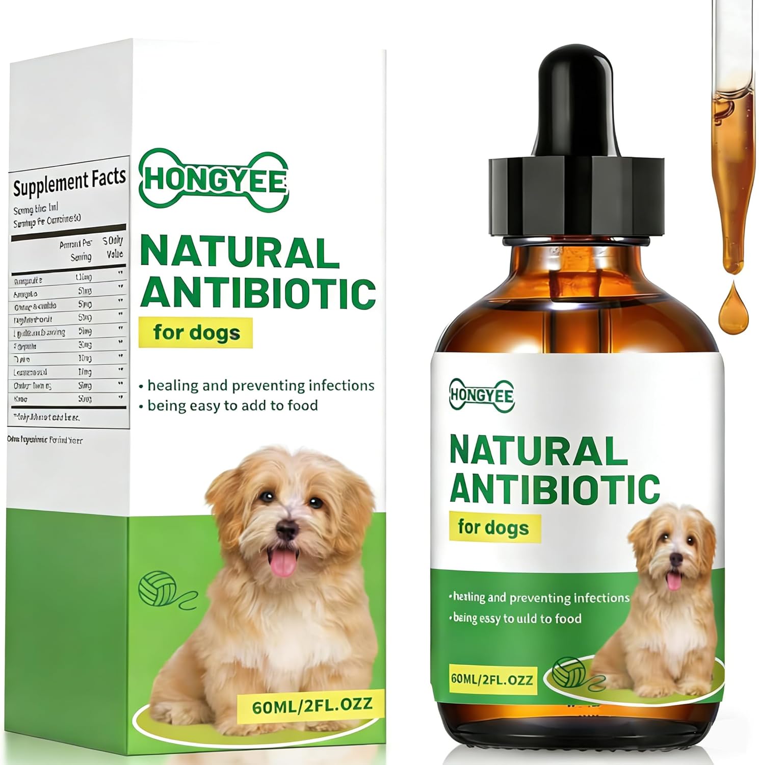 Антибиотични капки за кучета, хранителна добавка капки за кучета, натурална билкова хранителна добавка, подходяща за кучета от всички възрасти (60 мл)