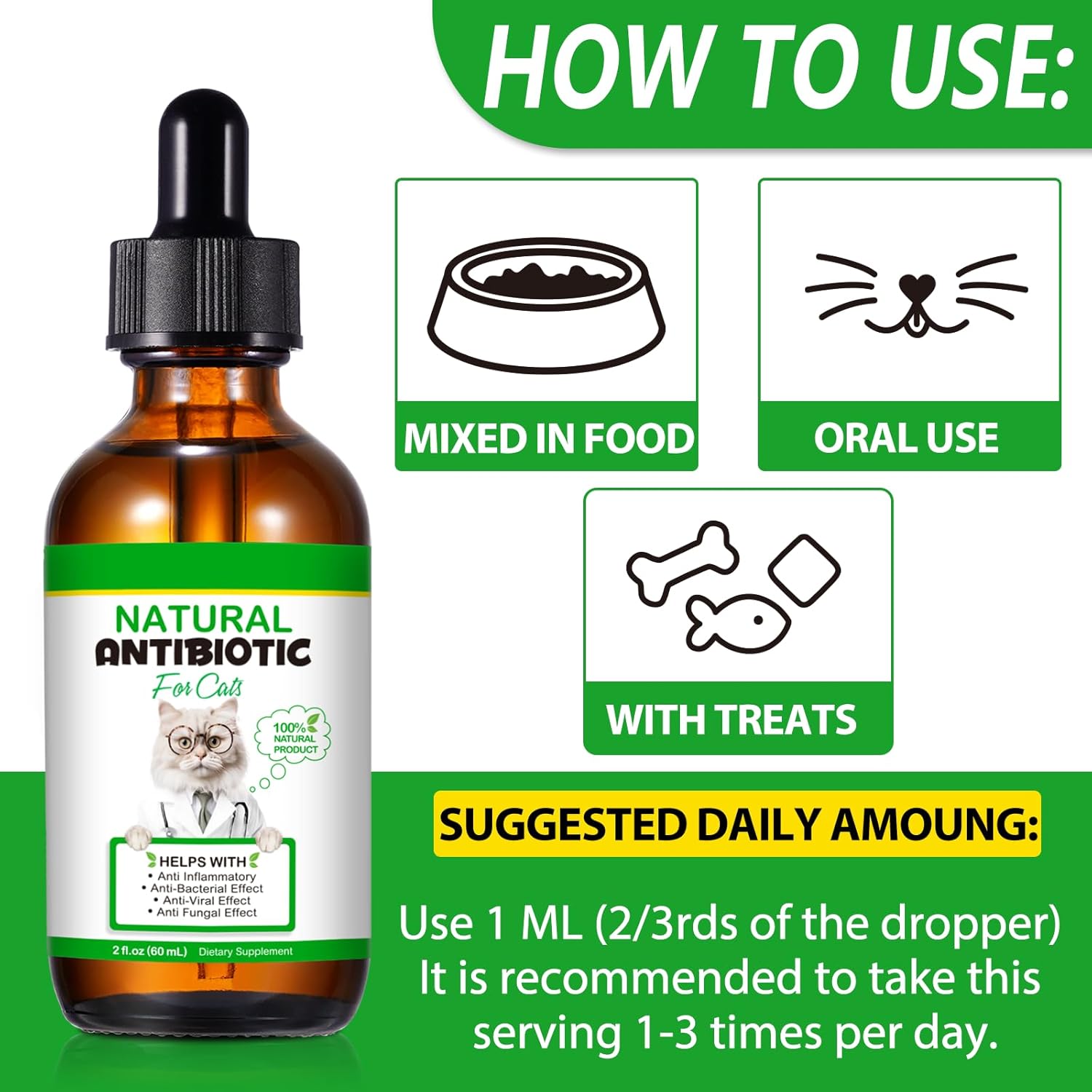 Антибиотици за котки, 60 мл, котешки антибиотици за инфекции, натурални антибиотици за котки, антибиотици за домашни любимци за облекчаване на алергии, подпомагане на имунната система, здравни грижи за котки
