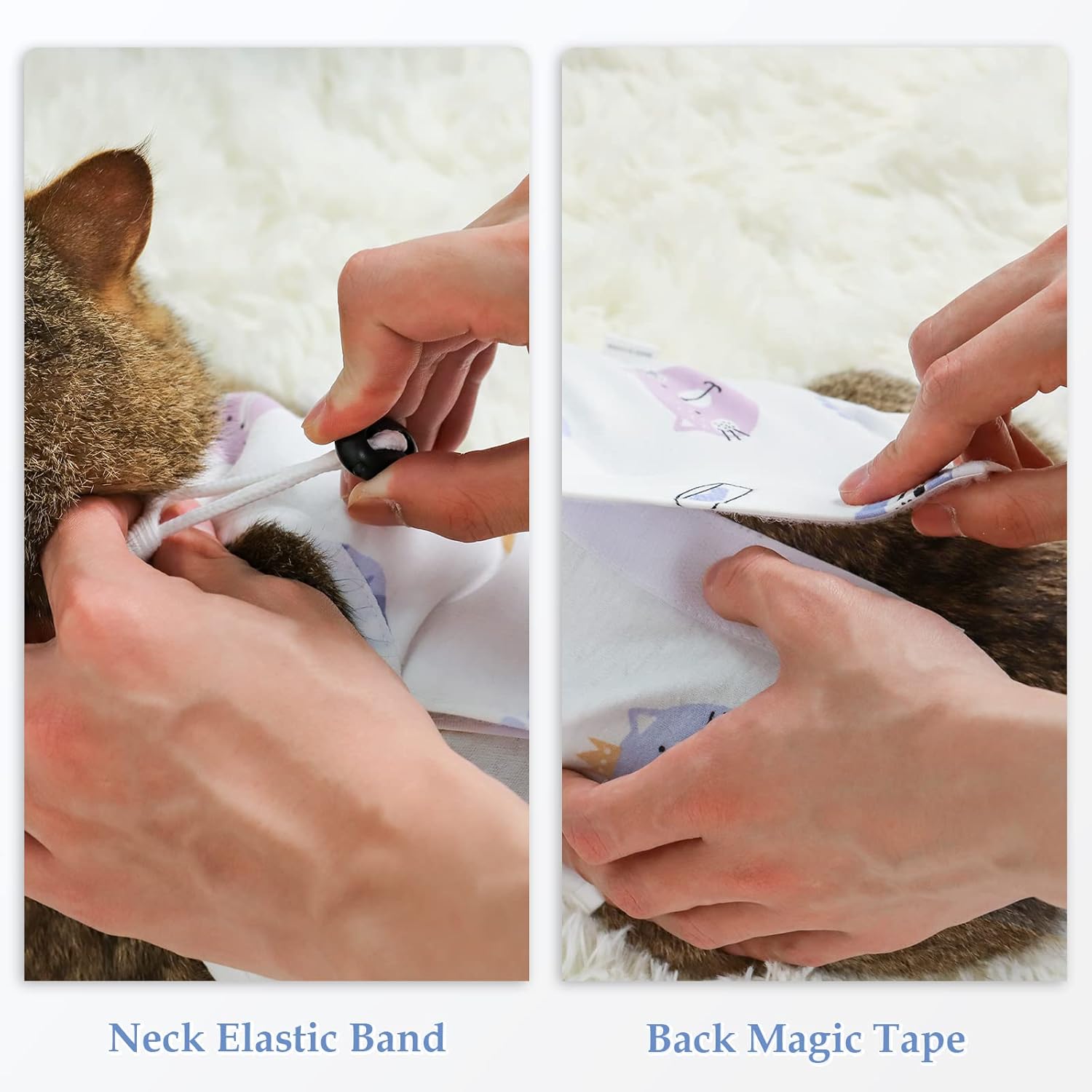 • СИГУРНО ПРИЛЕПВАНЕ И ЛЕСНО ОБЛИЧАНЕ Нашият хирургически костюм за котки е с регулируема еластична лента на врата и каишка на гърба, което осигурява сигурно и персонализирано прилягане за вашия пухкав приятел. Костюмът за възстановяване след кастрация може да намали риска от бягство или отстраняване и позволява лесно регулиране според размера и комфорта на котката.