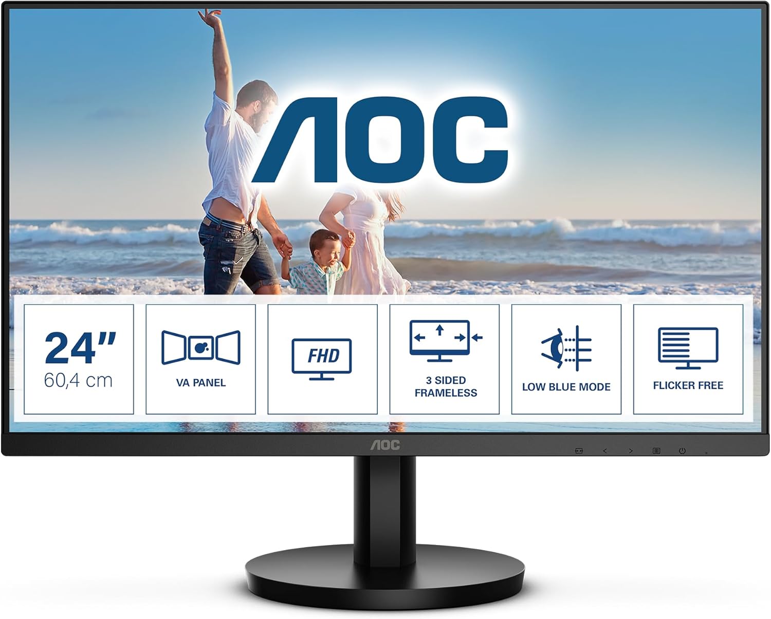AOC 24B3HM - 24-инчов Full HD монитор, Adaptive Sync (1920 x 1080, 75 Hz, VGA, HDMI 1.4) черен