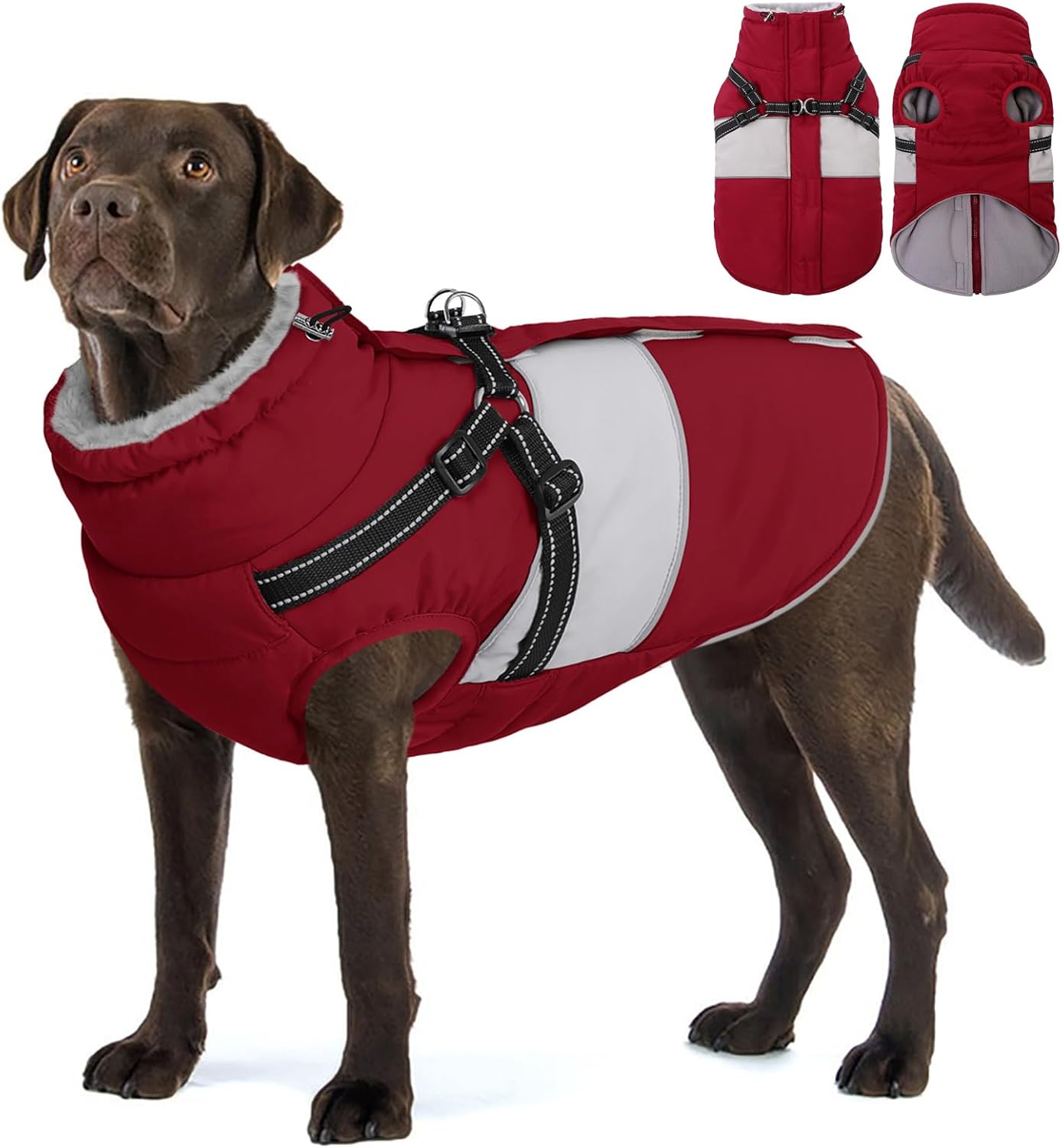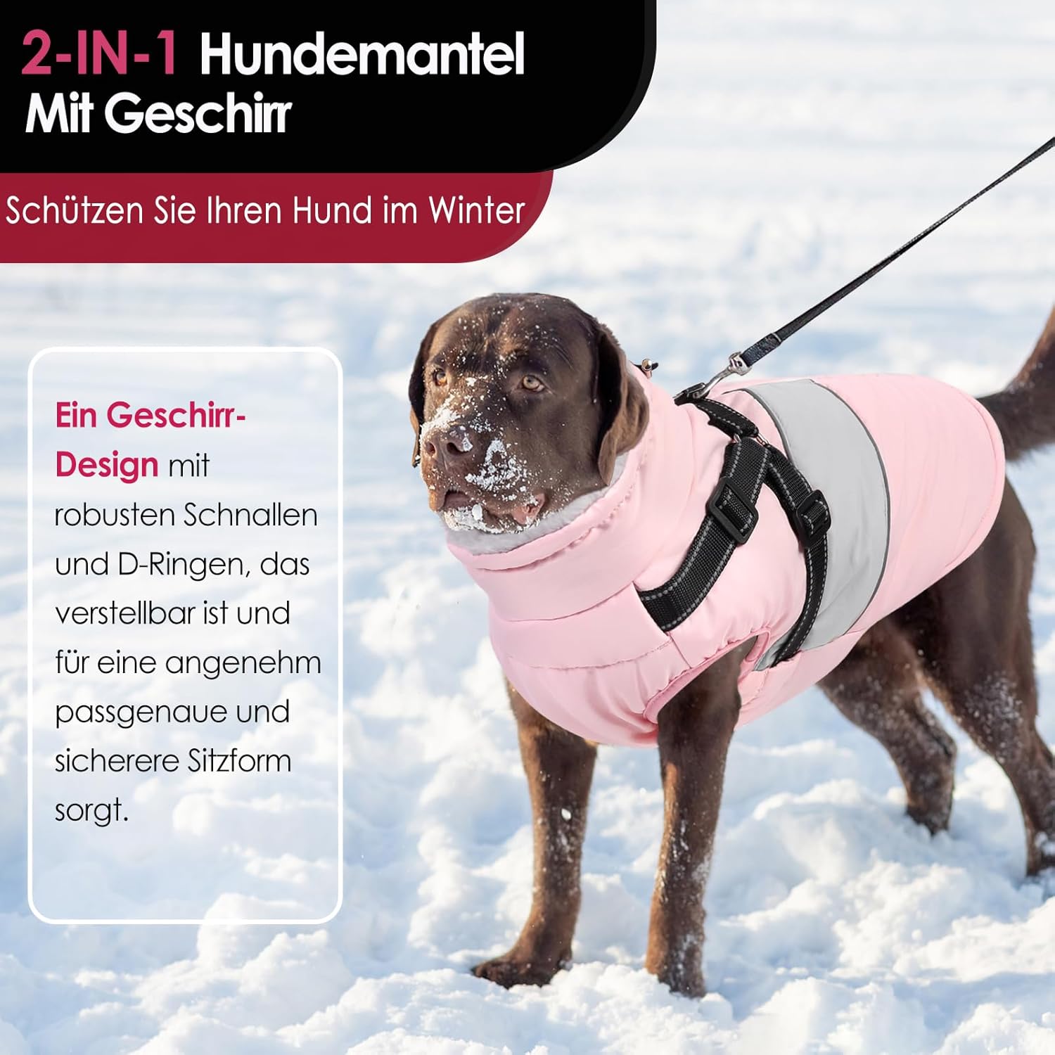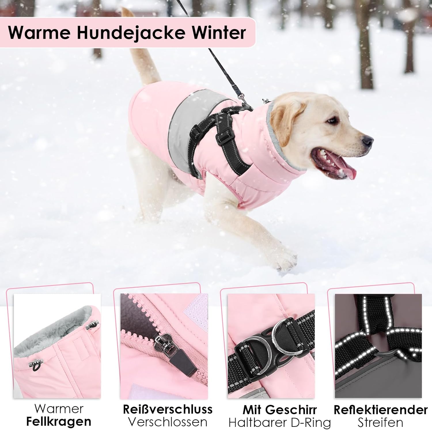 • Светлоотразително палто за кучета със защита на корема: това топло зимно палто с еластична гръдна област осигурява перфектно прилягане. Светлоотразителните ленти за безопасност на нашите зимни палта за кучета увеличават видимостта през нощта и защитават безопасността на вашето куче.