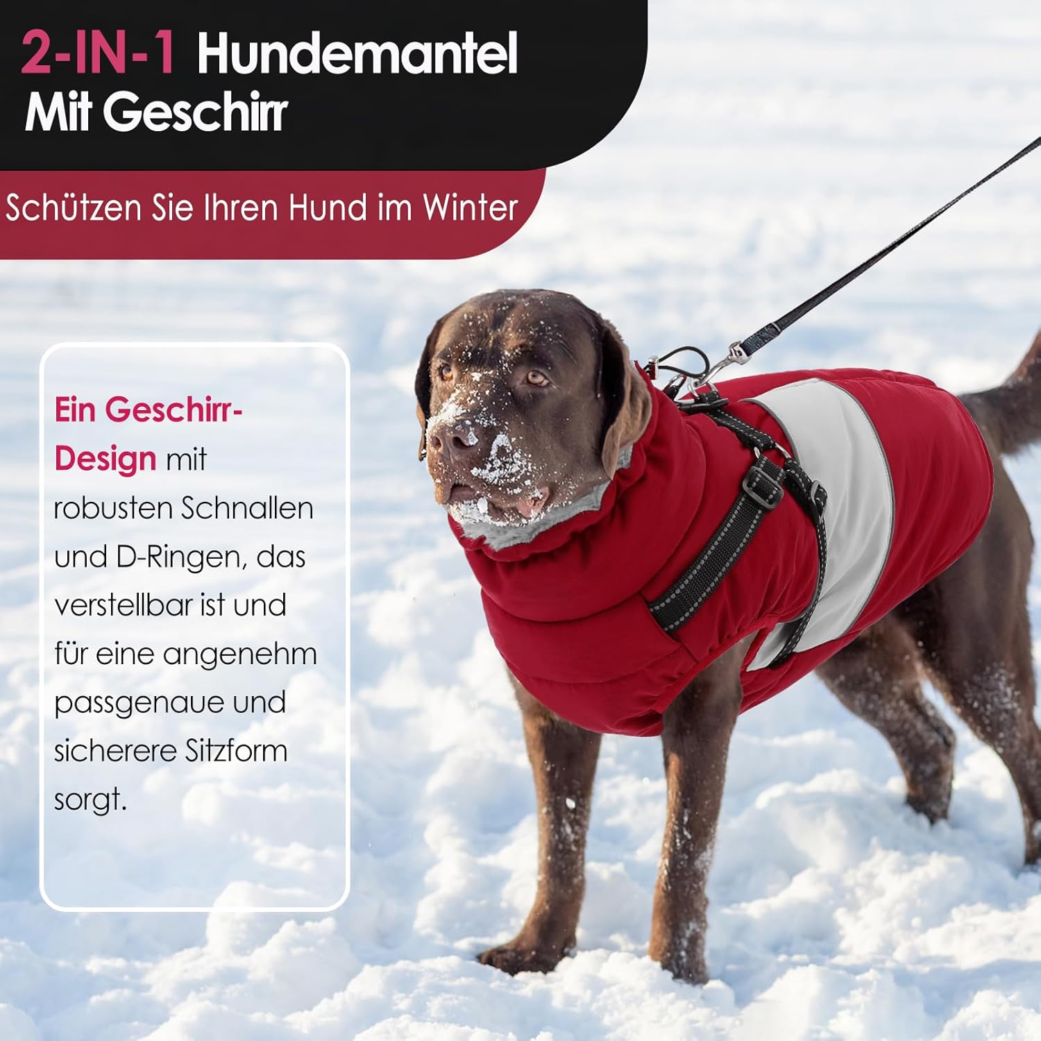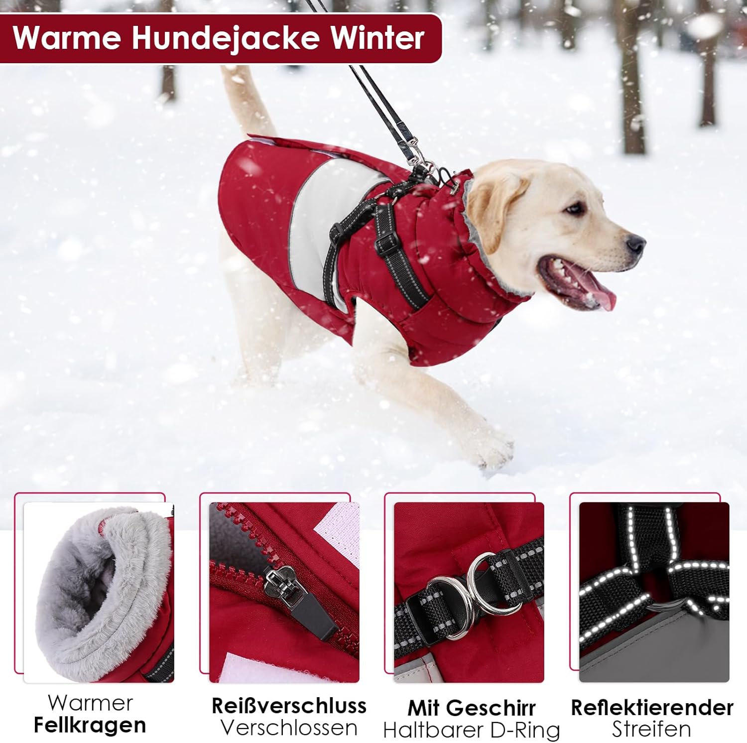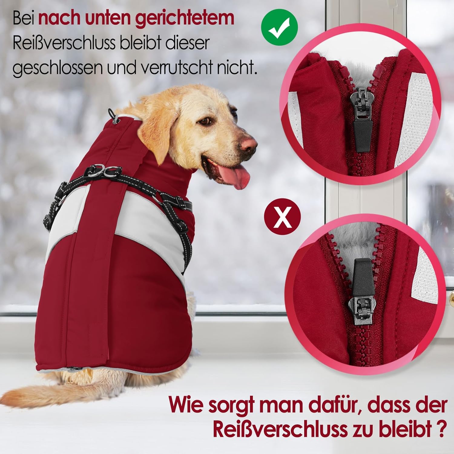 • Светлоотразително палто за кучета със защита на корема: това топло зимно палто с еластична гръдна област осигурява перфектно прилягане. Светлоотразителните ленти за безопасност на нашите зимни палта за кучета увеличават видимостта през нощта и защитават безопасността на вашето куче.