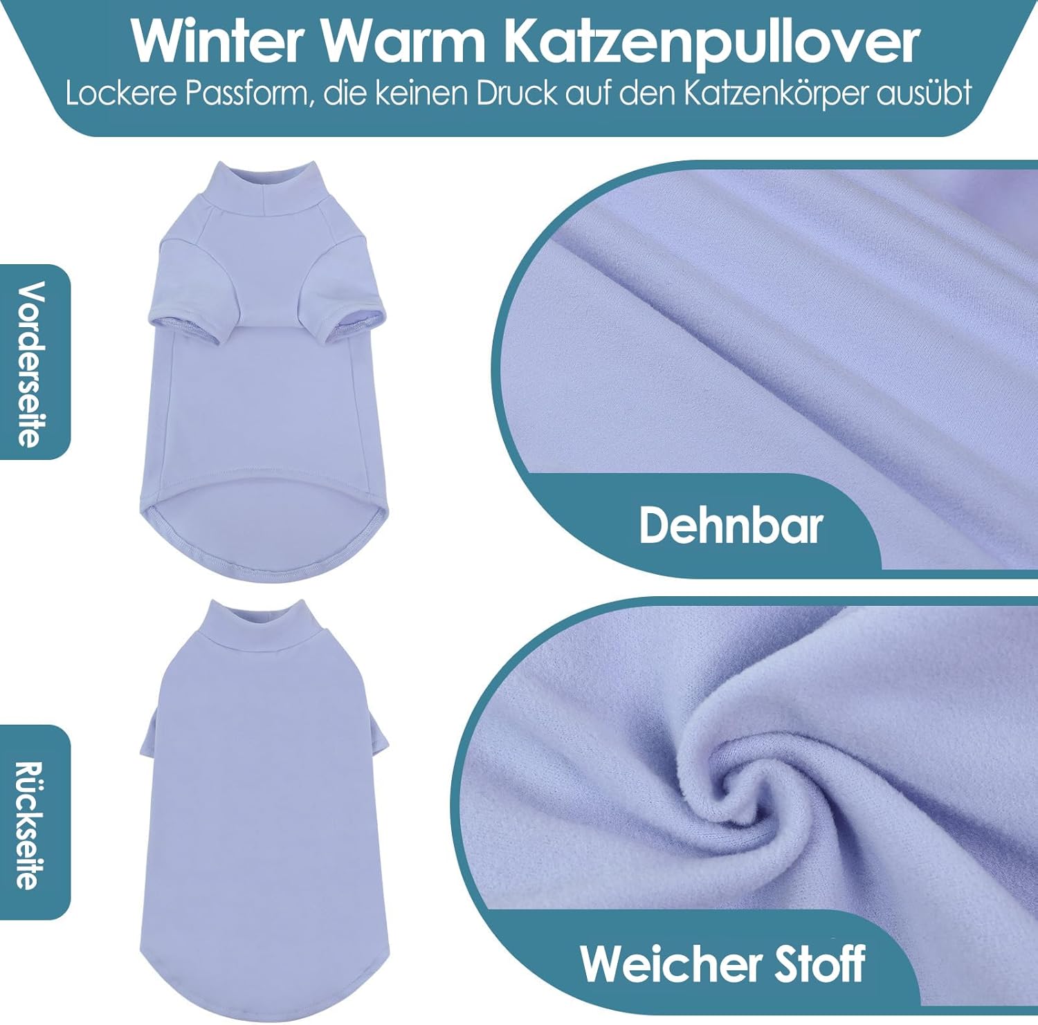 • Лесно обличане и събличане: зимните дрехи за безкосмести котки са с полу-рол яка. Високо еластичният материал на пухкавото котешко палто прави обличането лесно - просто издърпайте котешката дреха през главата си и я разгънете.