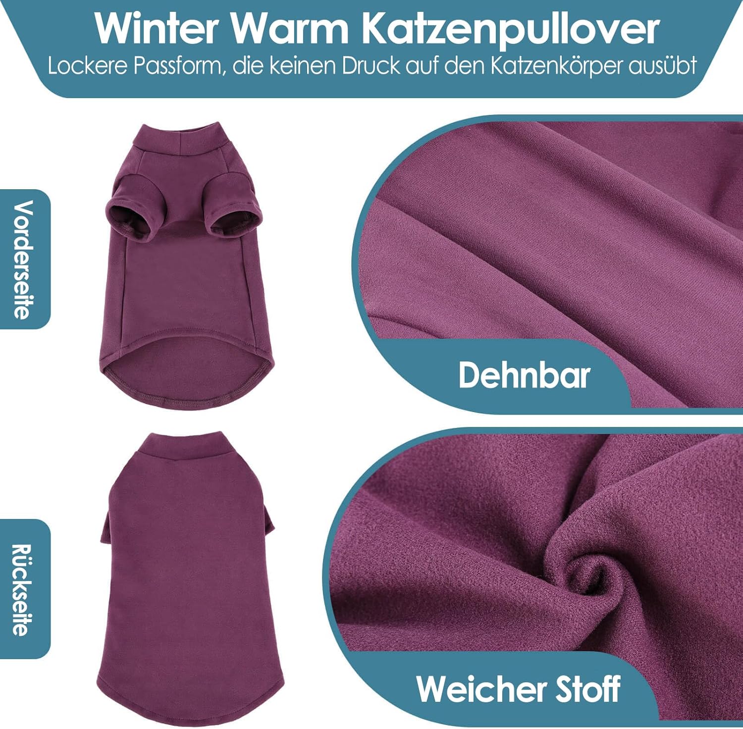 • Лесно обличане и събличане: зимните дрехи за безкосмести котки са с полу-рол яка. Високо еластичният материал на пухкавото котешко палто прави обличането лесно - просто издърпайте котешката дреха през главата си и я разгънете.