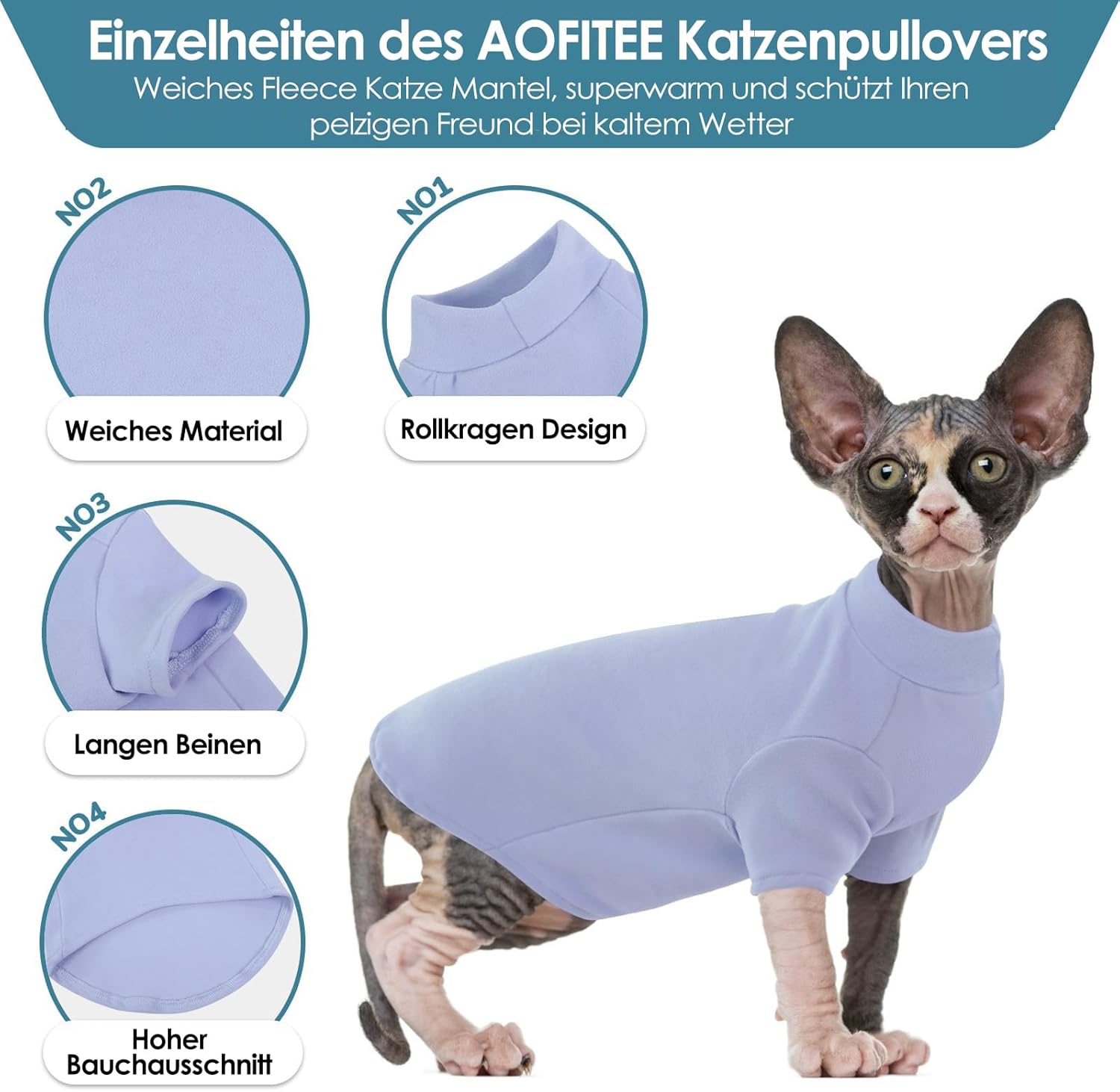 • Мек и топъл пуловер за котка: пуловерът за котка Сфинкс от AOFITEE е изработен от мек и удобен материал. Специално проектиран да осигурява топлина през есента и зимата, този пухкав пуловер за сфинкс е идеалният избор за безкосмести котки. Перфектен за ежедневна употреба.