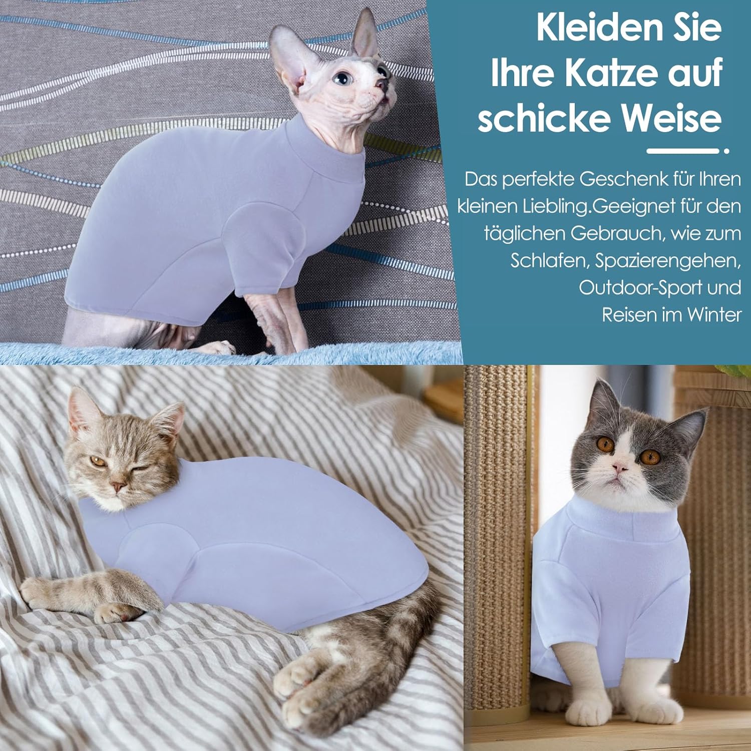 • БЕЗПРОБЛЕМНА ХИГИЕНА Дизайнът с висок изрез на коремчето позволява на вашата котка да извършва тоалетната си рутина без ограничения. Пуловер за котки с 4 размера и 7 цвята, от които да избирате, клиентите могат лесно да намерят перфектния размер и да покажат любовта си към котките Сфинкс със стил.