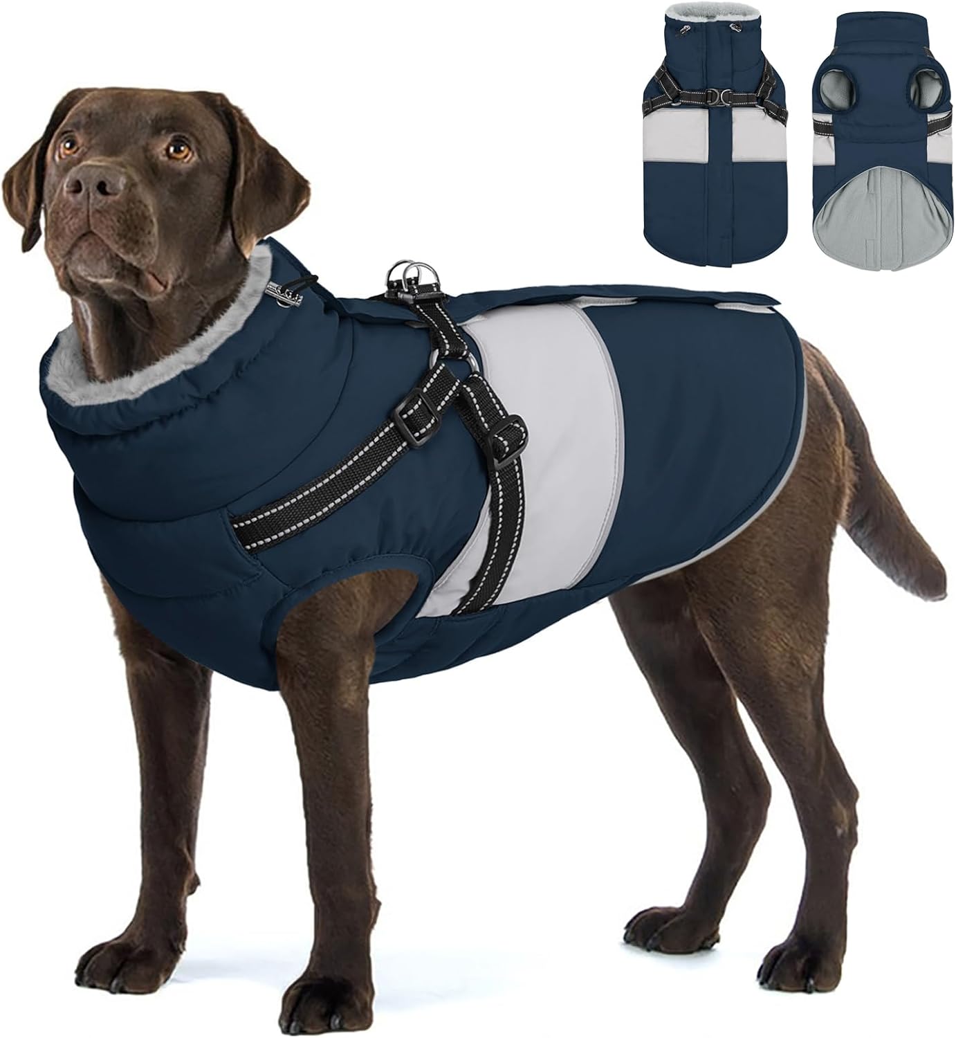 AOFITEE Зимно палто за кучета за големи кучета, топло яке за кучета Зимно палто с хамута, водоустойчиво зимно яке за кучета Топли палта за кучета от полар Зимна жилетка за лабрадор, хрътка, златен ретривър, 2XL