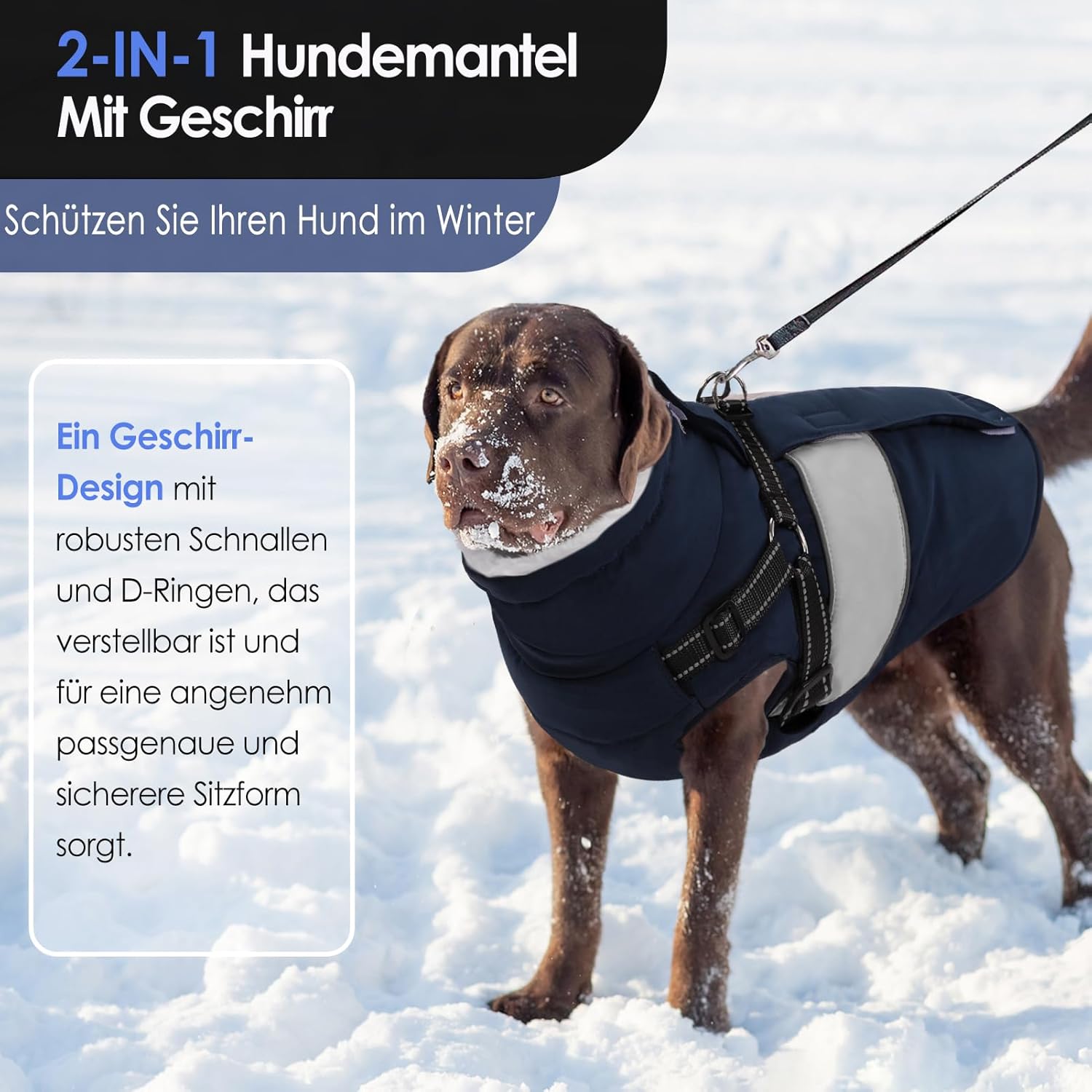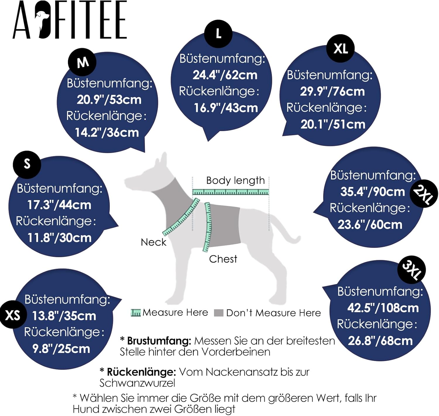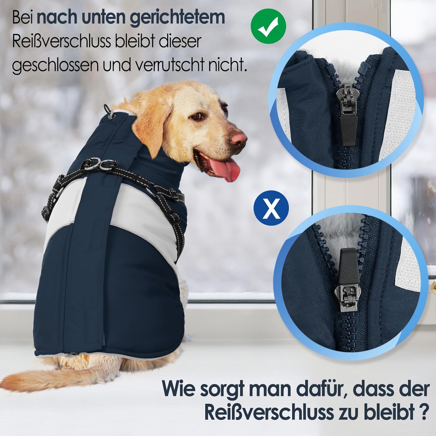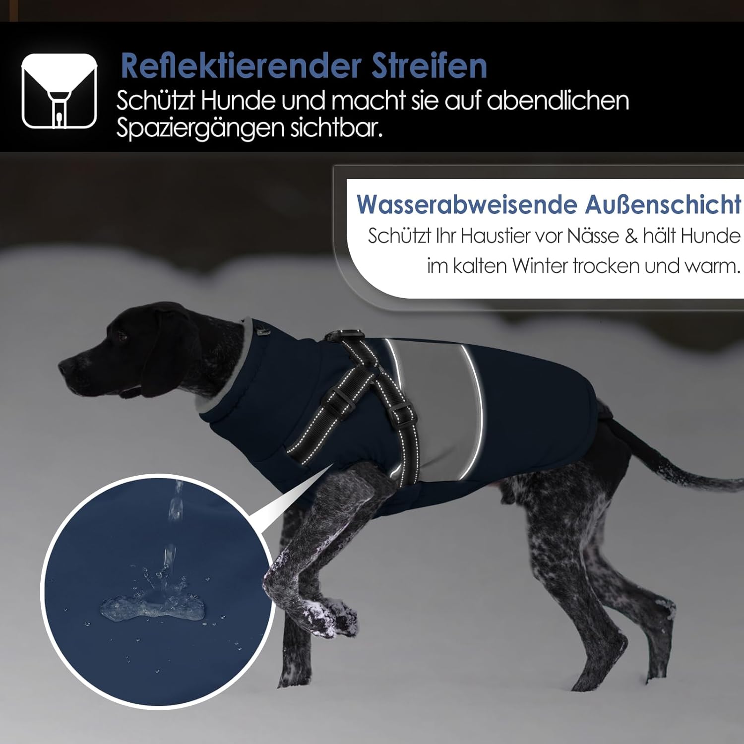 • Светлоотразително палто за кучета със защита на корема: това топло зимно палто с еластична гръдна област осигурява перфектно прилягане. Светлоотразителните ленти за безопасност на нашите зимни палта за кучета увеличават видимостта през нощта и защитават безопасността на вашето куче.