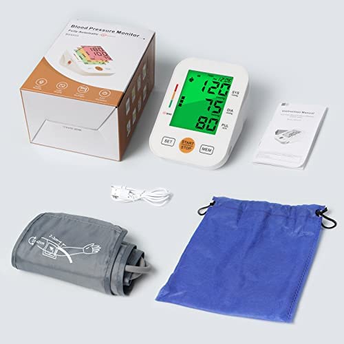 • Автоматичен апарат за кръвно налягане: напълно автоматична работа с един бутон. Просто увийте маншета около горната част на ръката си и натиснете бутона за старт/стоп. Отчитането се показва на екрана за 30 секунди, включително систолно, диастолно, пулс и дата и час. Може също да показва възможна пулсова аритмия. Моля, имайте предвид, че само Вашият лекар може да прецени вида и тежестта на аритмията.