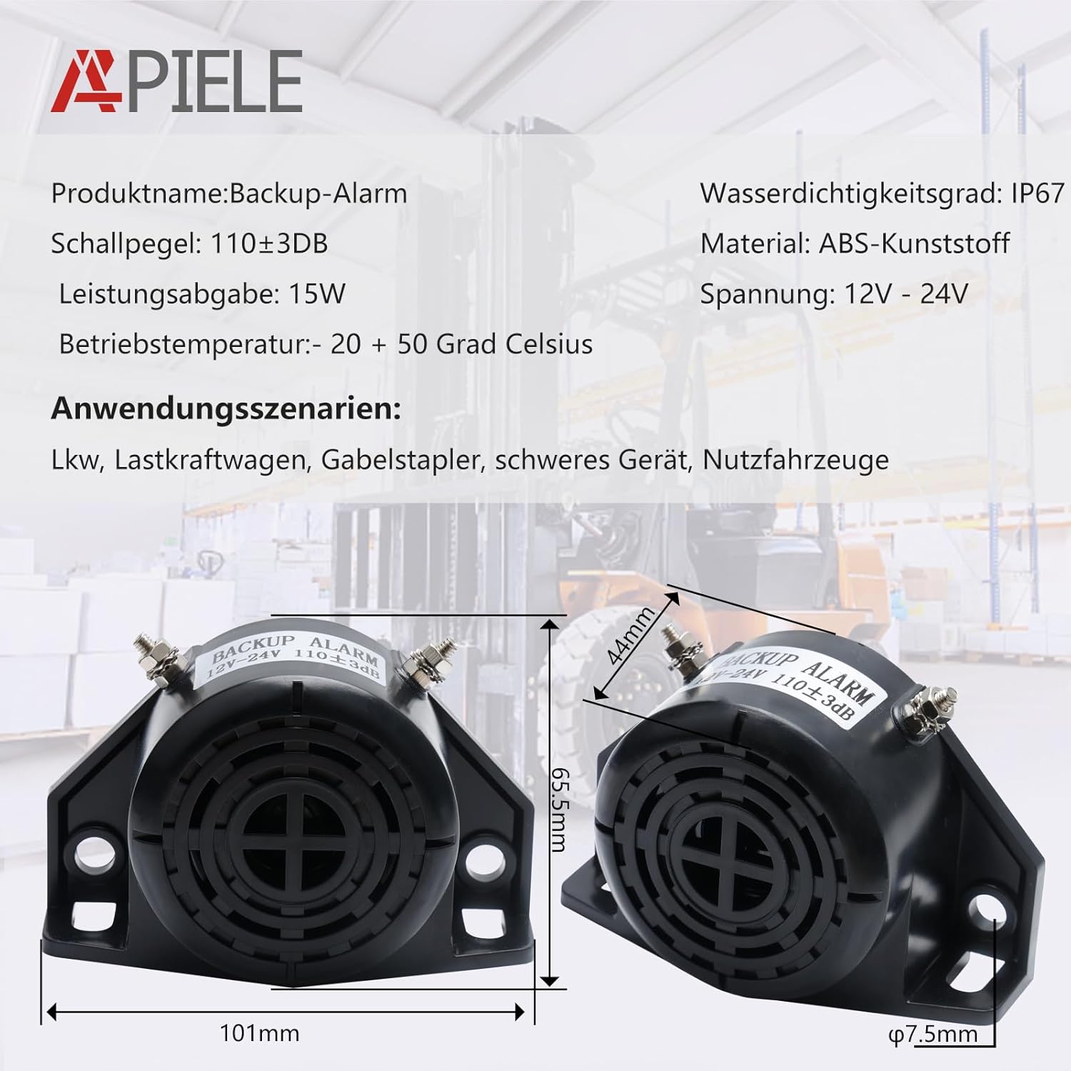 Подходящ за 12V и 24V тежкотоварни превозни средства и търговска употреба, багери, строителна техника, специални превозни средства, паркинги и различни големи превозни средства за контейнеровози.