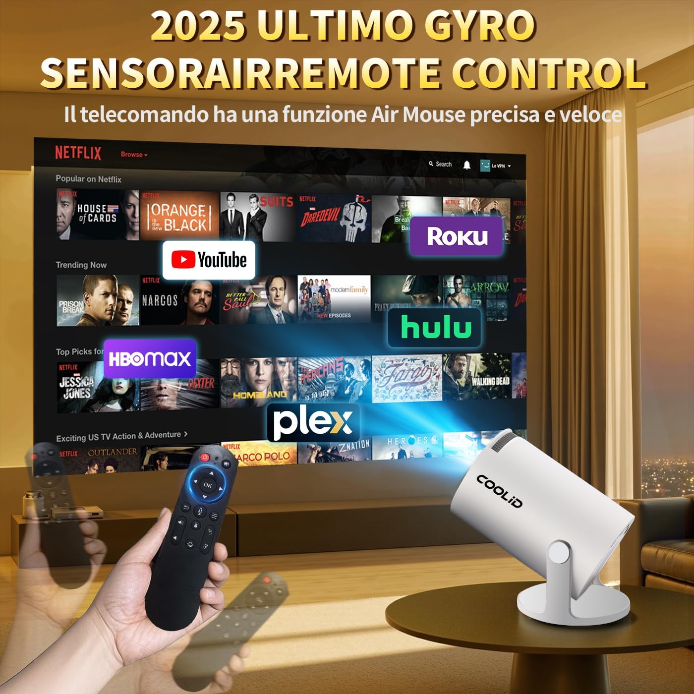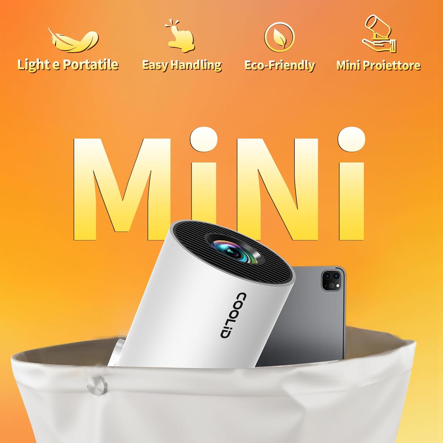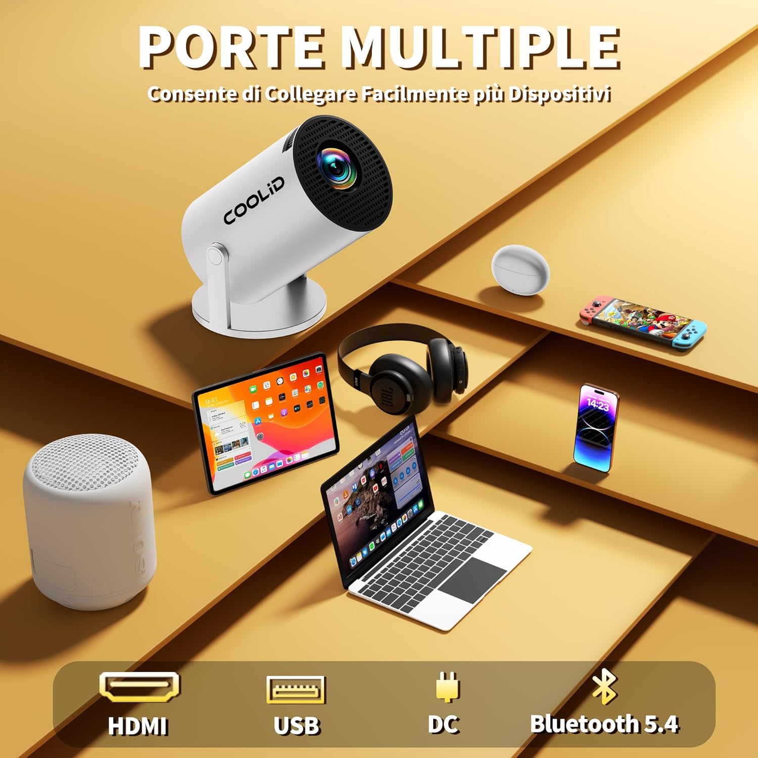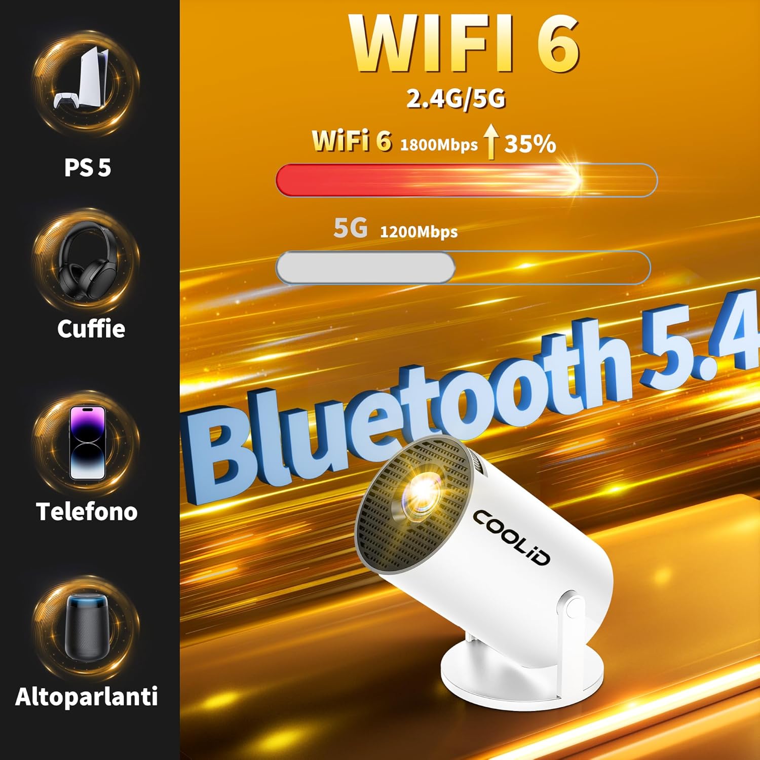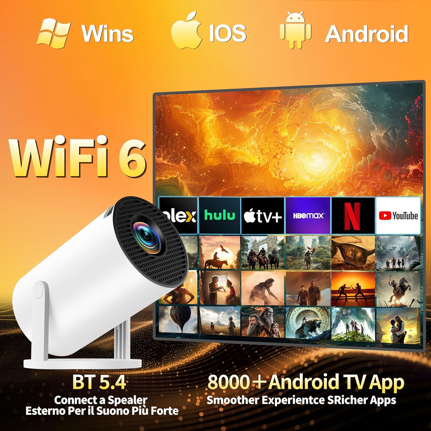 [App Integrata] Мини проектор 1080P HD, преносим проектор с WiFi 6 BT 5.4, видео проектор с Messa Fuoco Automatica e Correzione Automatica Del Trapezzo, Applicabile Chiavetta TV/USB/HDMI