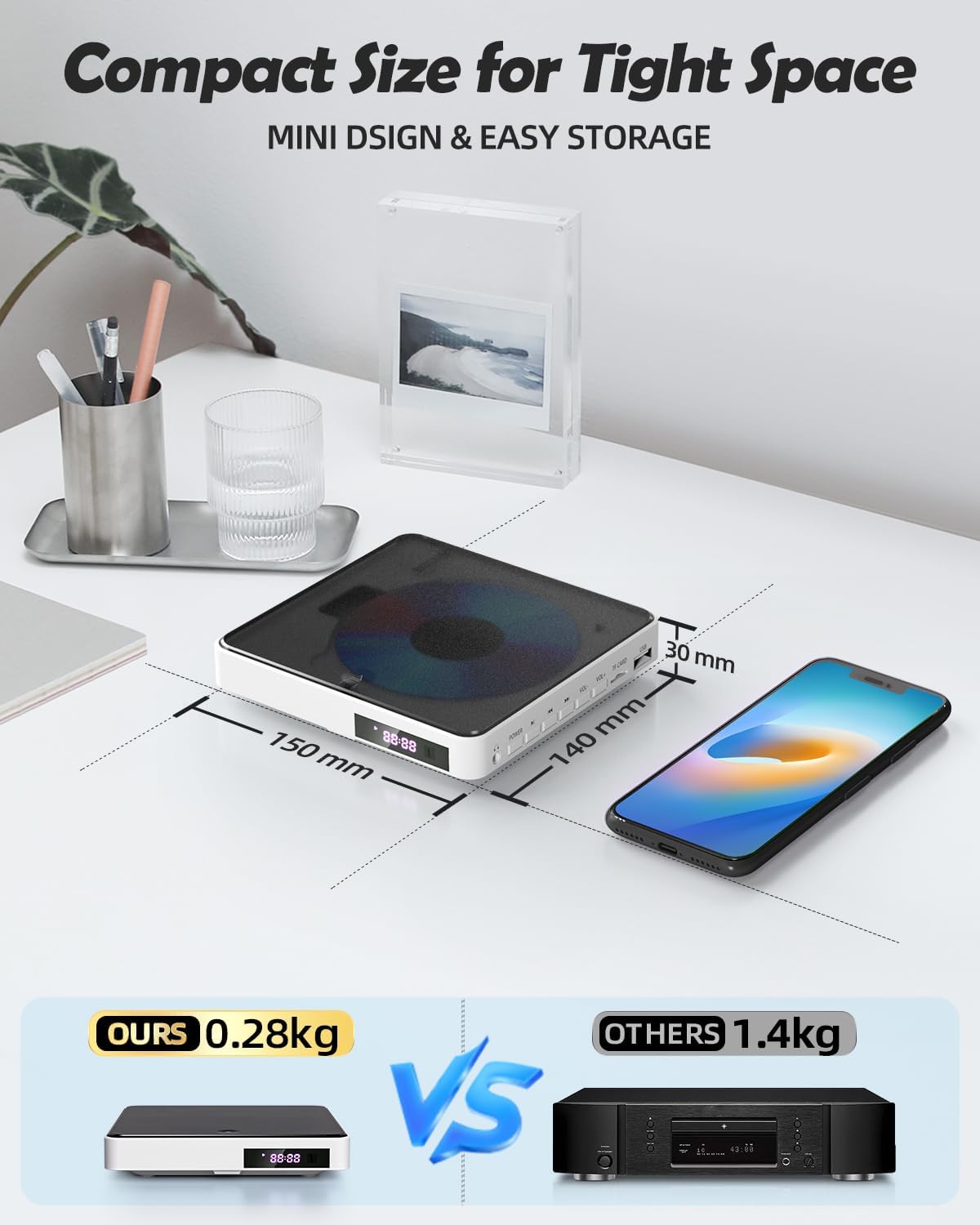 • Надстройте устройството и последната памет: този мини DVD плейър има подобрено ядро ​​на устройството. Може да се чете бързо за секунди. Потискането на шума гарантира, че DVD-тата се зареждат тихо. Корекцията на грешки ви позволява да четете добре надраскани дискове. Защитата от удар осигурява плавно и стабилно гледане. Благодарение на функцията за памет на точките на прекъсване, устройството винаги може да започне оттам, където е спряло.