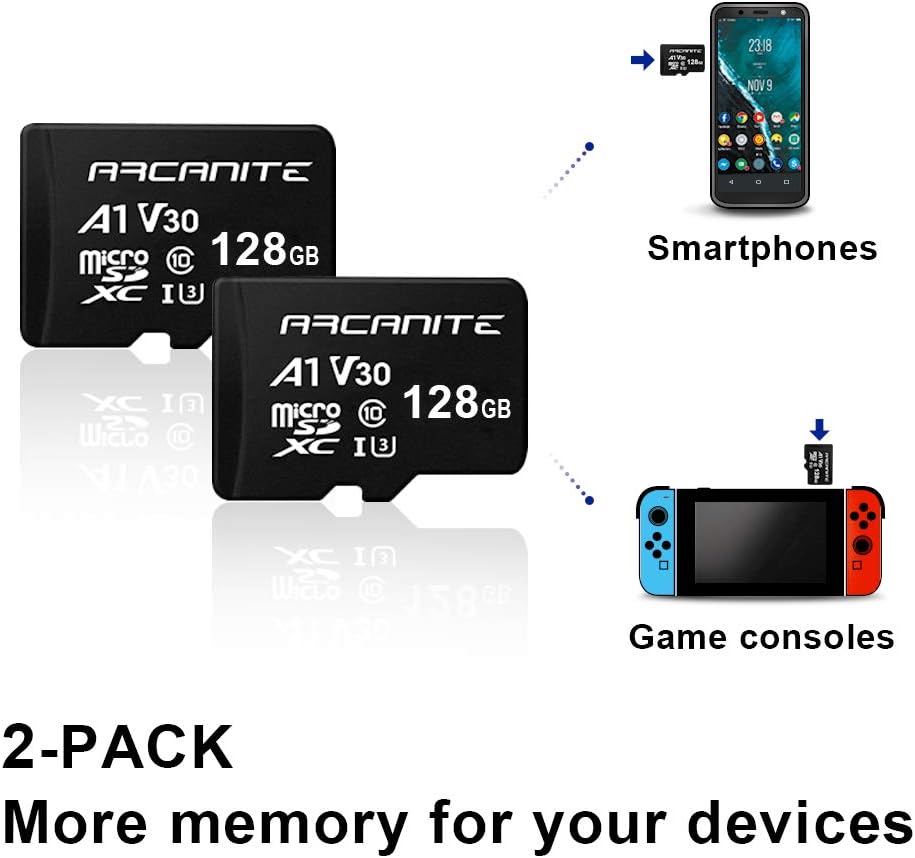 • microSDXC карта памет с SD адаптер UHS-1 U3, A1, V30, 4K Ultra HD, Клас 10. За фотоапарати, таблети, смартфони и други устройства.