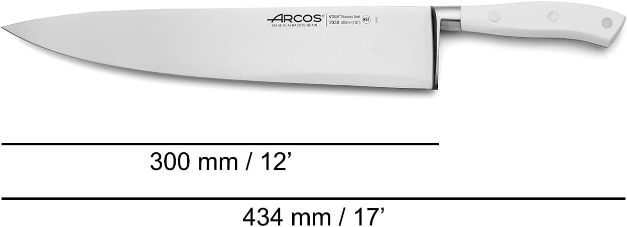 Arcos 233824 Riviera Blanc Series - Нож за готвач - Острие от кована неръждаема стомана Nitrum 300 мм - Дръжка от полиоксиметилен (POM) Цвят Бял, 37.5 x 5 x 5 см