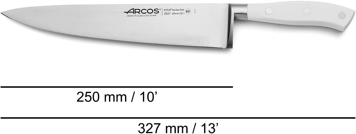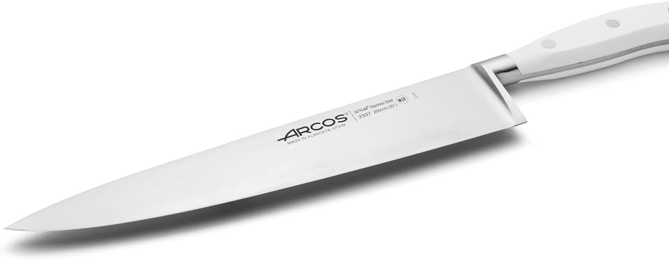 Arcos Riviera Blanc Series - Нож за готвач - Острие от кована неръждаема стомана Nitrum, 250 мм - Дръжка от полиоксиметилен (POM), цвят: бял
