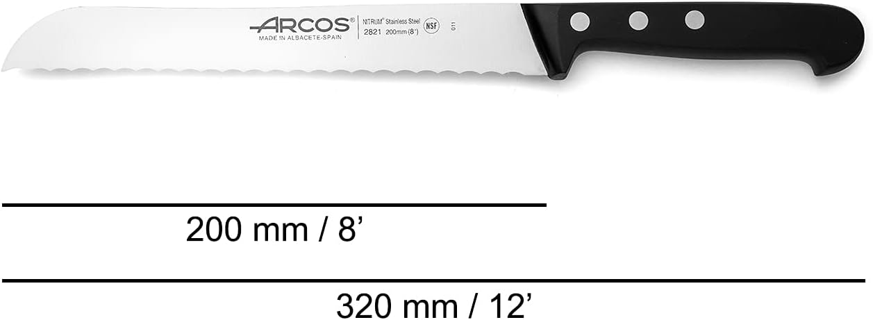 Arcos Universal Series - Нож за хляб - 200 мм острие от неръждаема стомана с алвеоли - Дръжка от полиоксиметилен (POM), черен