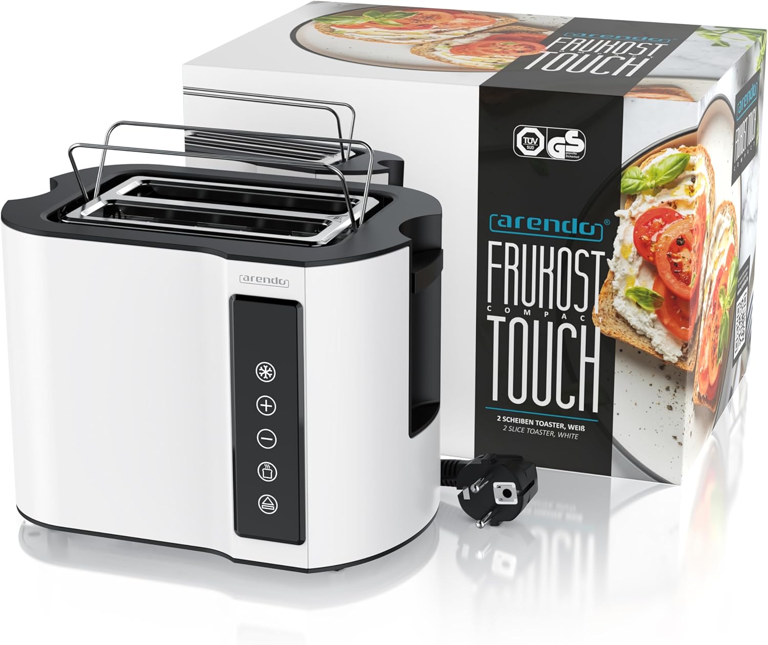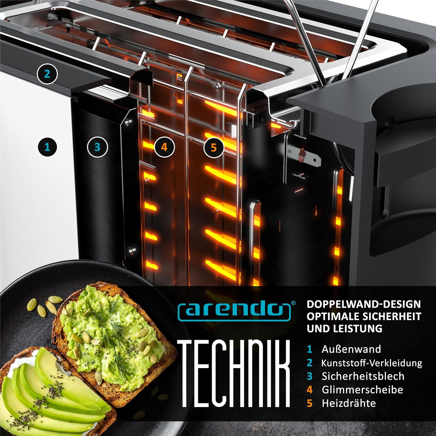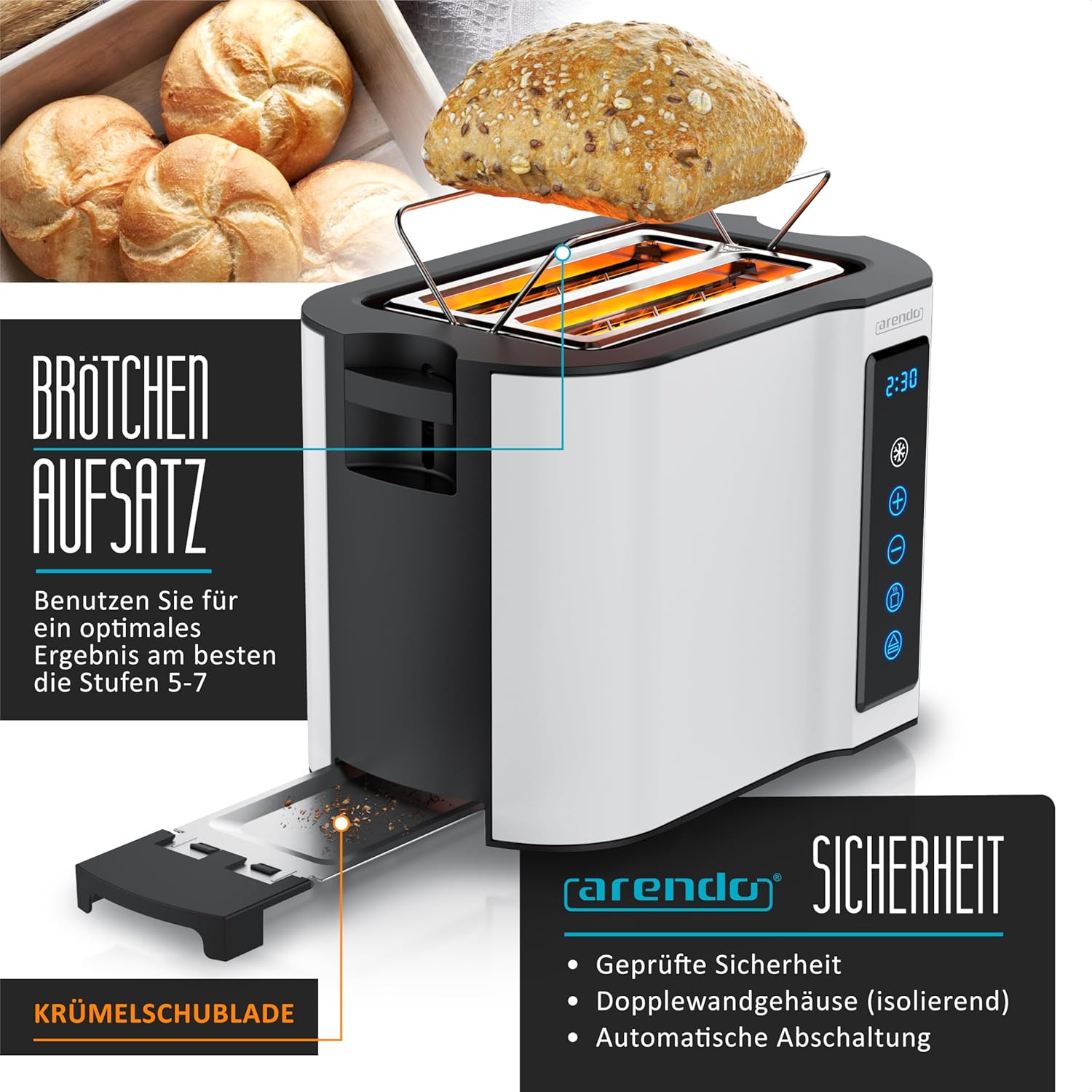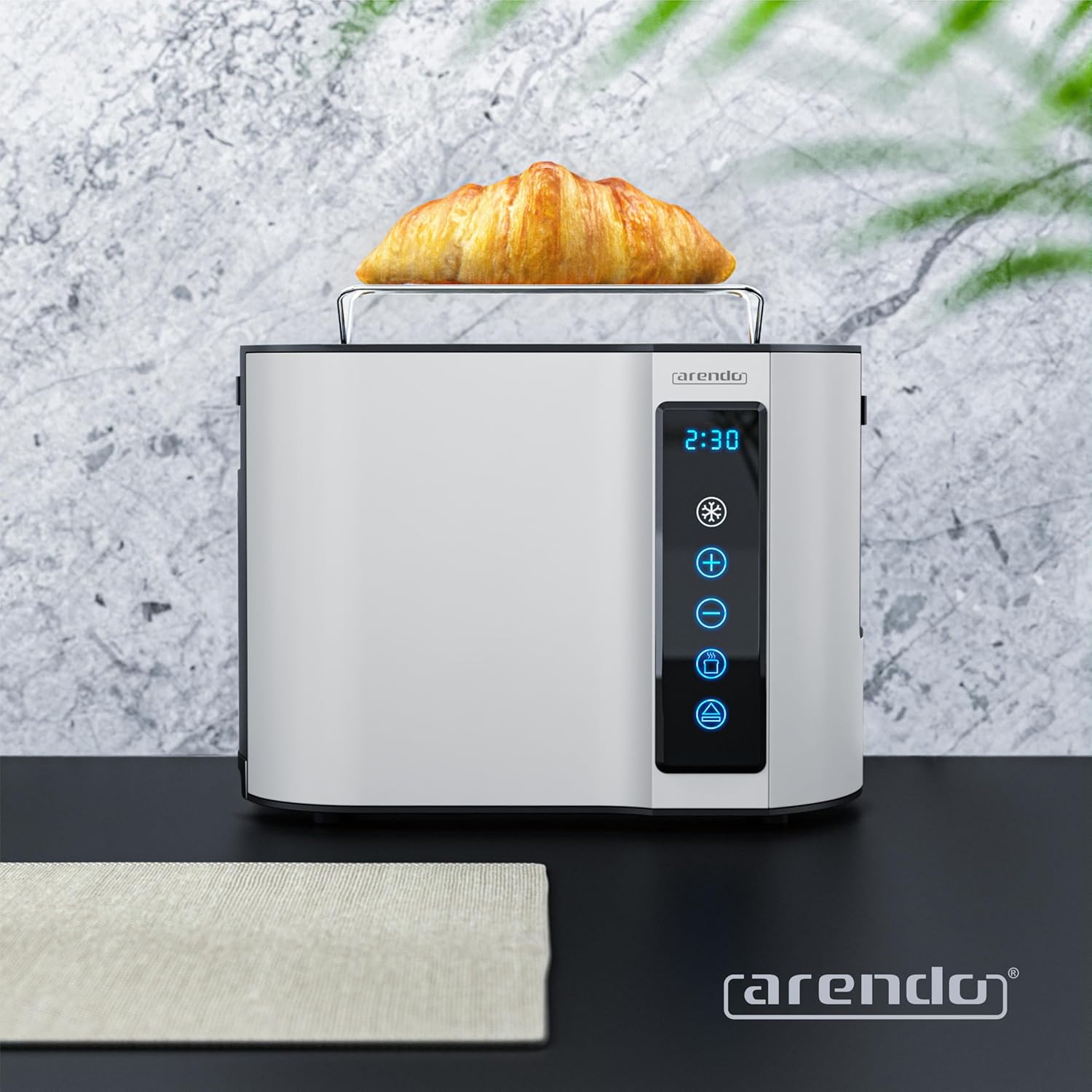 Arendo - Тостер за 2 филии хляб от неръждаема стомана - Сензорен панел - Цифров дисплей и дисплей за оставащо време - 800 W - Двойностенен корпус - с приставка за хлебче - 7 нива на изпичане - Центриране на филийките хляб -