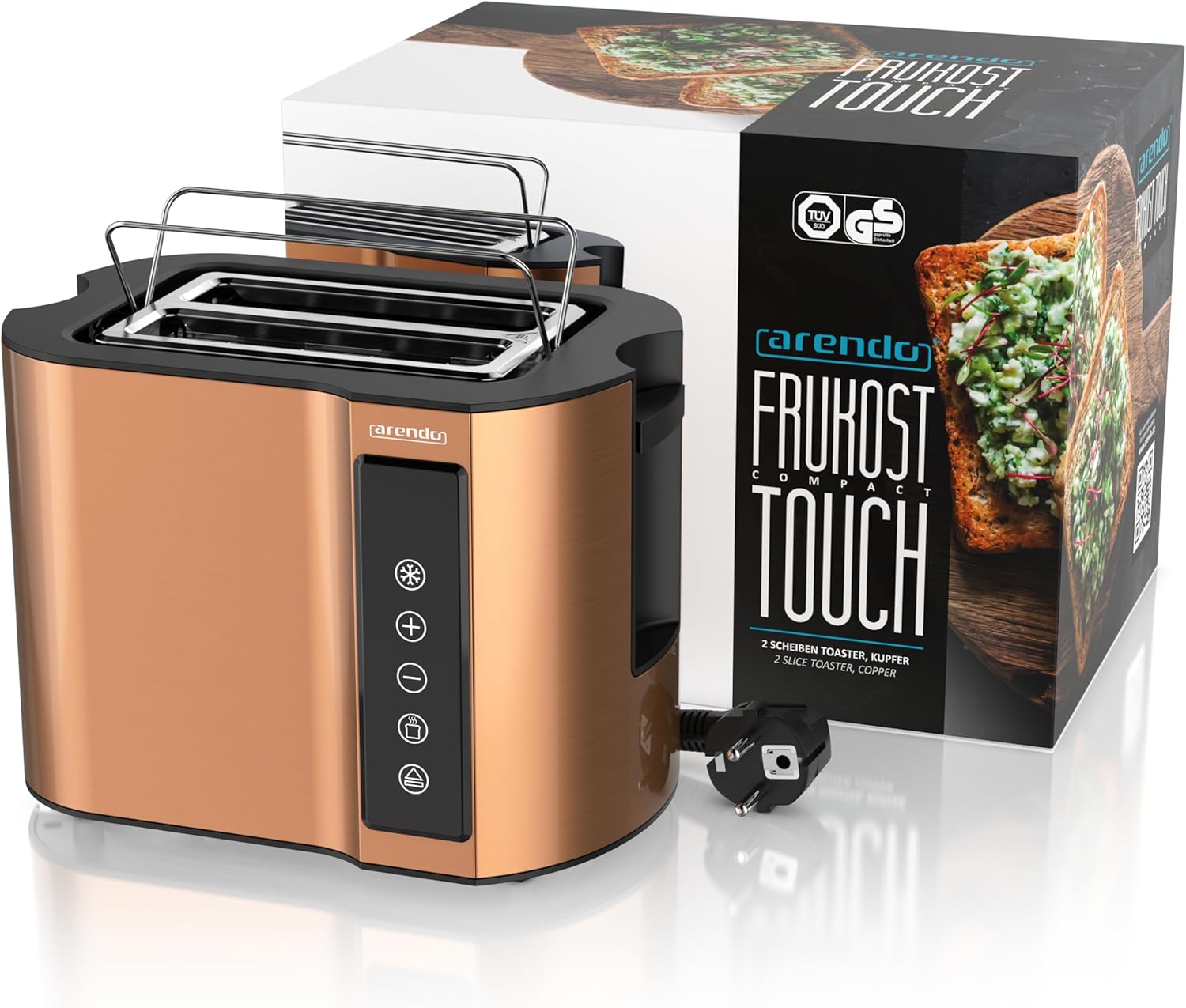 Arendo - Тостер за 2 филии хляб от неръждаема стомана - Сензорен панел - Цифров дисплей и дисплей за оставащо време - 800 W - Двустенен корпус - С приставка за хлебче - 7 нива на изпичане - Центриране на филийките хляб -