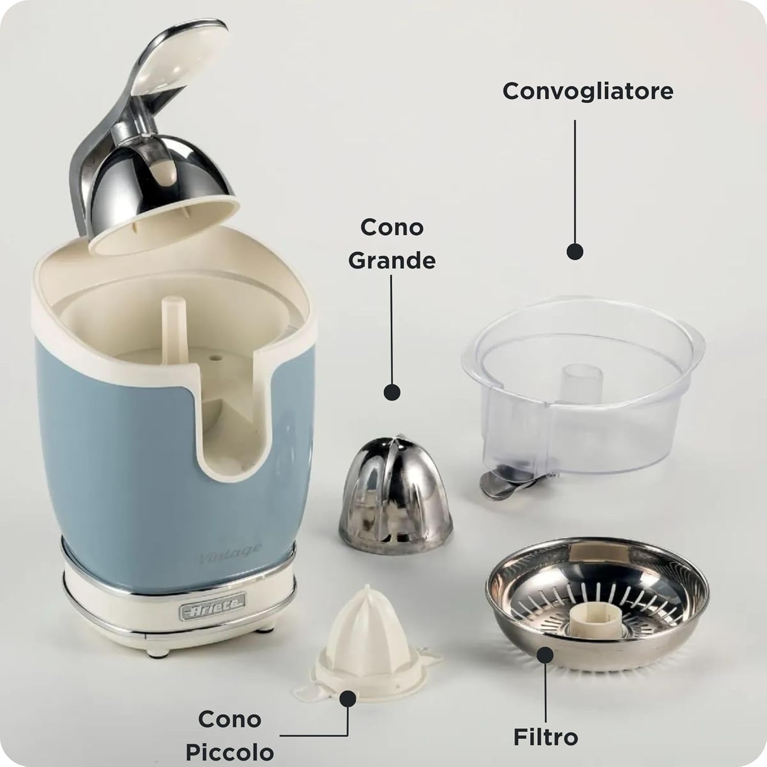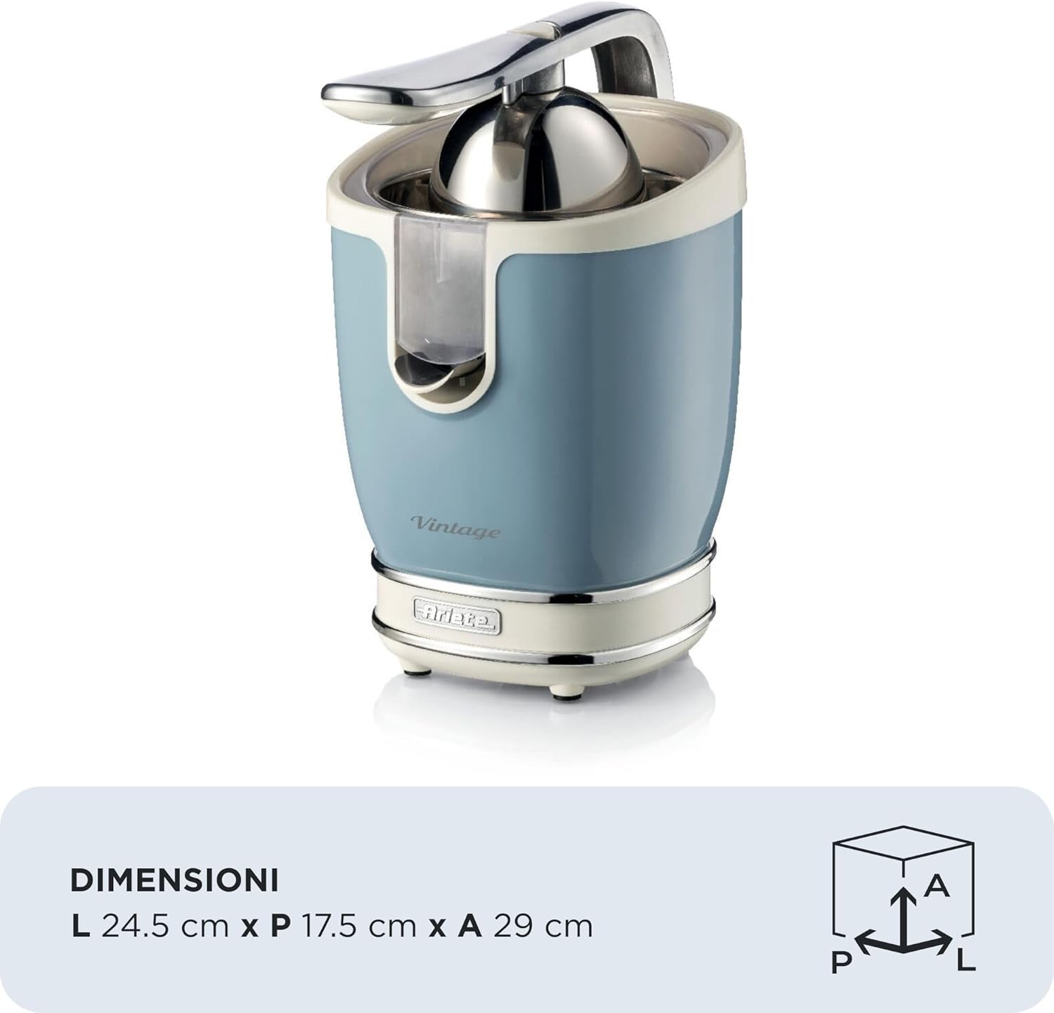 Цитрусовата сокоизстисквачка от серията Capri съчетава изискан дизайн с практична функционалност и внася средиземноморския чар на Capri директно във вашата кухня. С мощен, тих мотор, здрав метален корпус и елегантна хромирана повърхност, тя впечатлява както визуално, така и със своята ефективност. Оборудвана с два конуса от неръждаема стомана - единият голям за портокали и грейпфрути, а другият с удобен щифт за захващане за лимони и лаймове - цитрусовата сокоизстисквачка предлага максимална гъвкавост. Професионалният лост за налягане позволява лесно изцеждане, а чучурът от неръждаема стомана осигурява прецизно освобождаване на сок без разхищение. Благодарение на внимателно обмислената конструкция, работната повърхност остава чиста, а почистването е изключително лесно. Тази цитрусова сокоизстисквачка е перфектният избор за всеки, който цени стила, комфорта и професионалните резултати - независимо дали е за сутрешен витаминен шок или за освежаващи напитки междувременно.