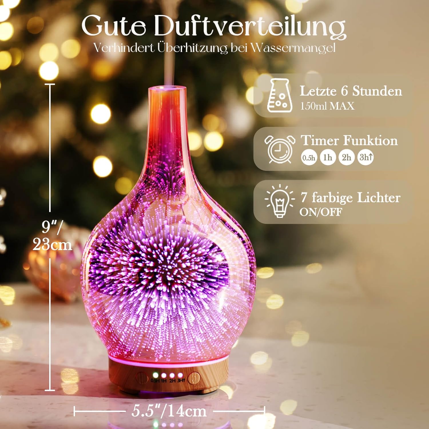 • Елегантна идея за подарък – този дифузерен овлажнител е изработен от специални ръчно изработени стъклени изделия. Независимо дали е пролет, лято, есен или зима, това е най-красивият ви подарък, с който да благодарите!