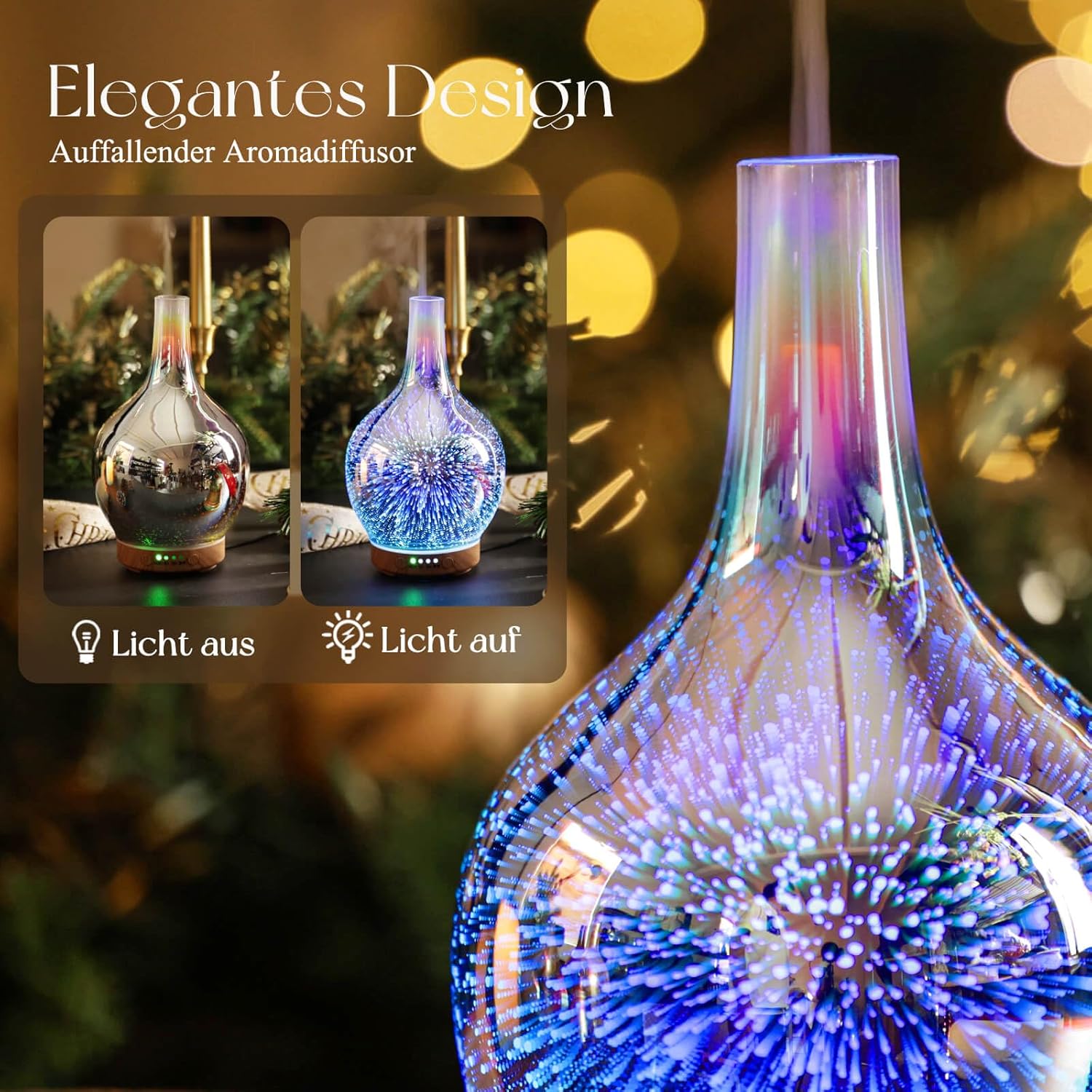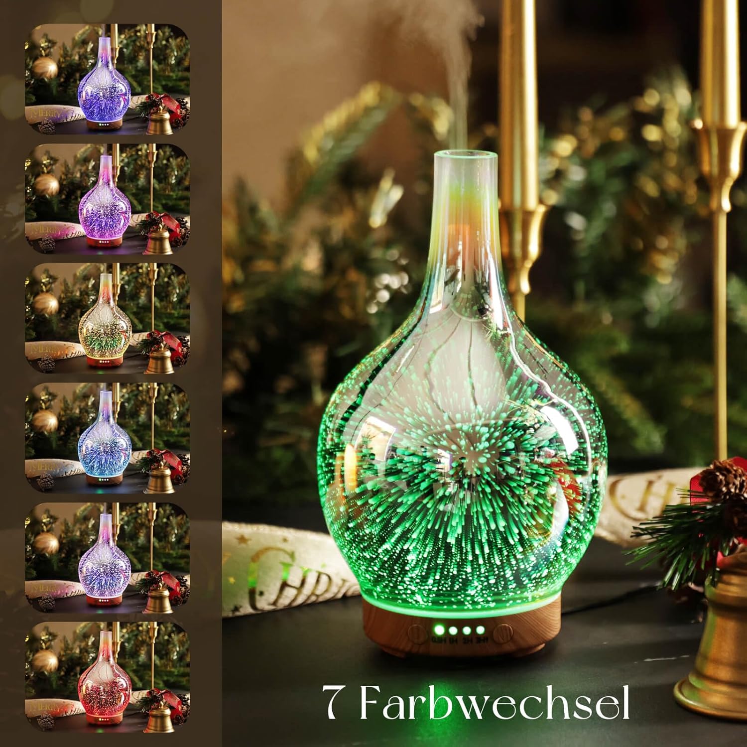 Арома дифузер овлажнител Porseme, 150 мл, ръчно издухан 3D овлажнител, тих ултразвуков, 7 променящи цвета си светодиода, овлажнител за стая, без BPA, за дома, йога, спа с таймер (сребрист)