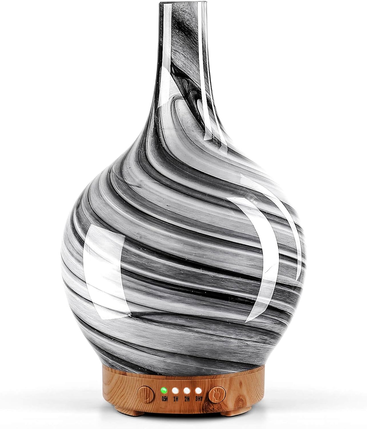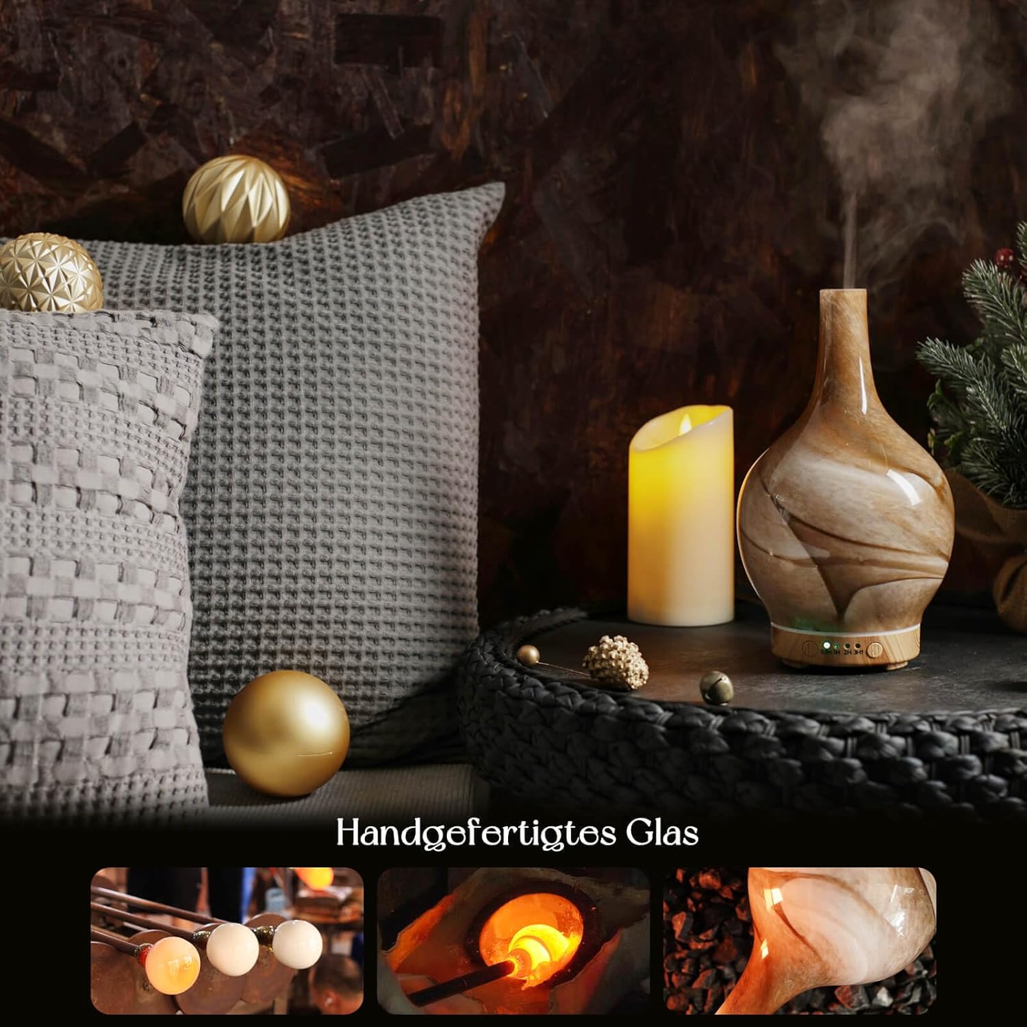 • УНИКАЛНИ РЪЧНО ИЗРАБОТЕНИ ПРОИЗВЕДЕНИЯ НА ПРОИЗВЕДЕНИЯТА НА ПРОИЗВЕДЕНИЯТА – Ако имате нужда от украшение за дома си, този специален ръчно изработен стъклен дифузер за етерични масла е вашият перфектен избор. Този овлажнител използва стъклен капак и декоративна дървесна шарка. Той е идеален за декориране на вашата спалня, хол, детска стая, кабинет, офис и стая за йога.