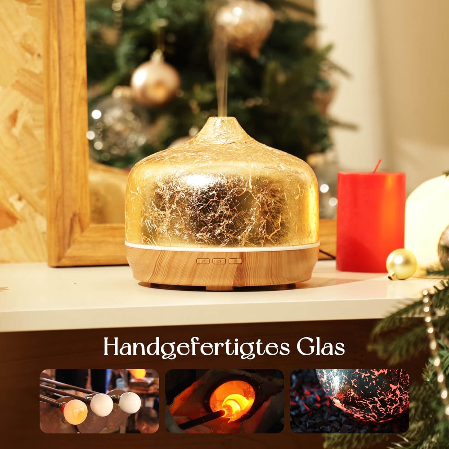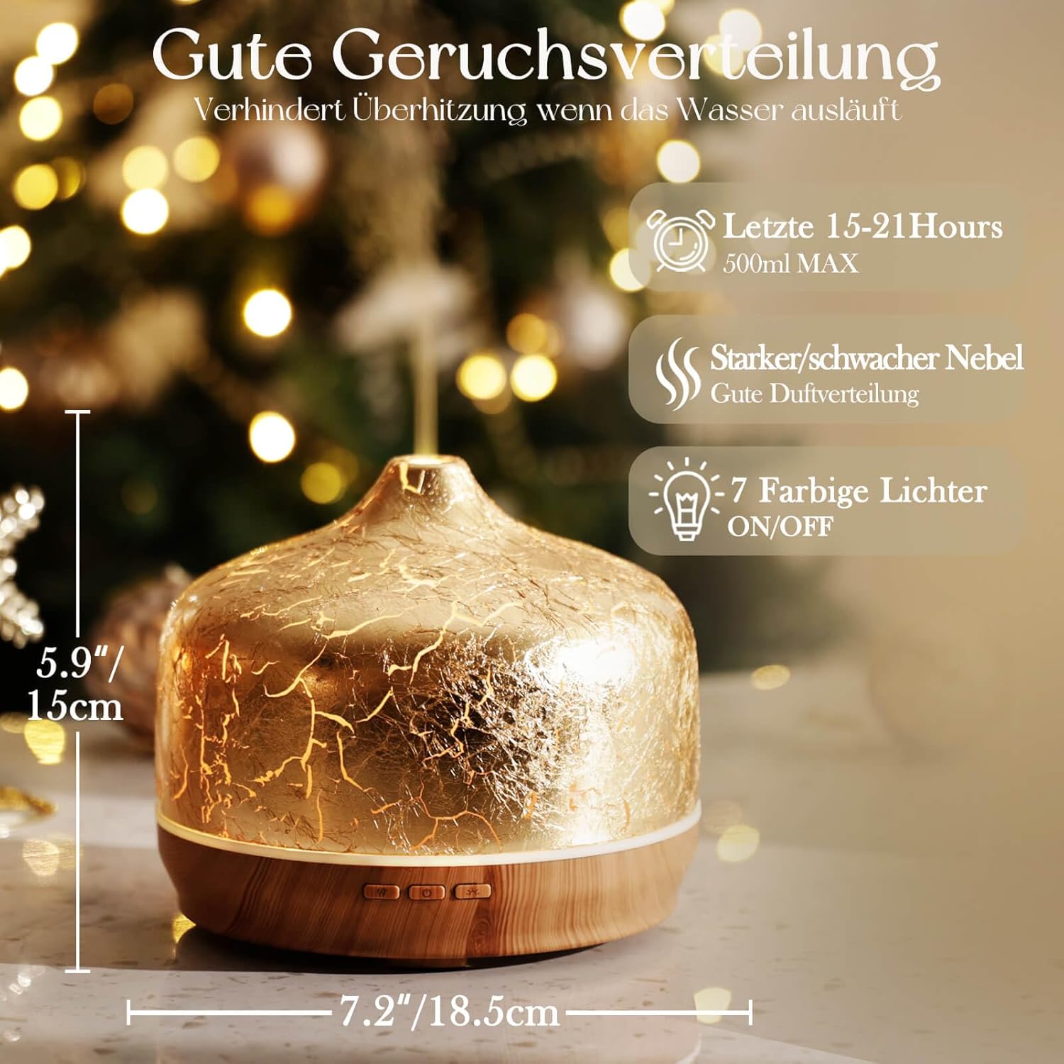 1. Remove the aroma diffuser from its packaging. 2. Fill water into the water tank. 3. Add 4-6 drops of essential oil (optional). 4. Close the lid. 5. Choose one of the 7 colours or the automatic colour changing mode. 6. Choose the mist mode: continuous spray or interval spray. 7. Turn on the diffuser. 8. For maintenance: rinse the water tank regularly with water and dry it thoroughly.