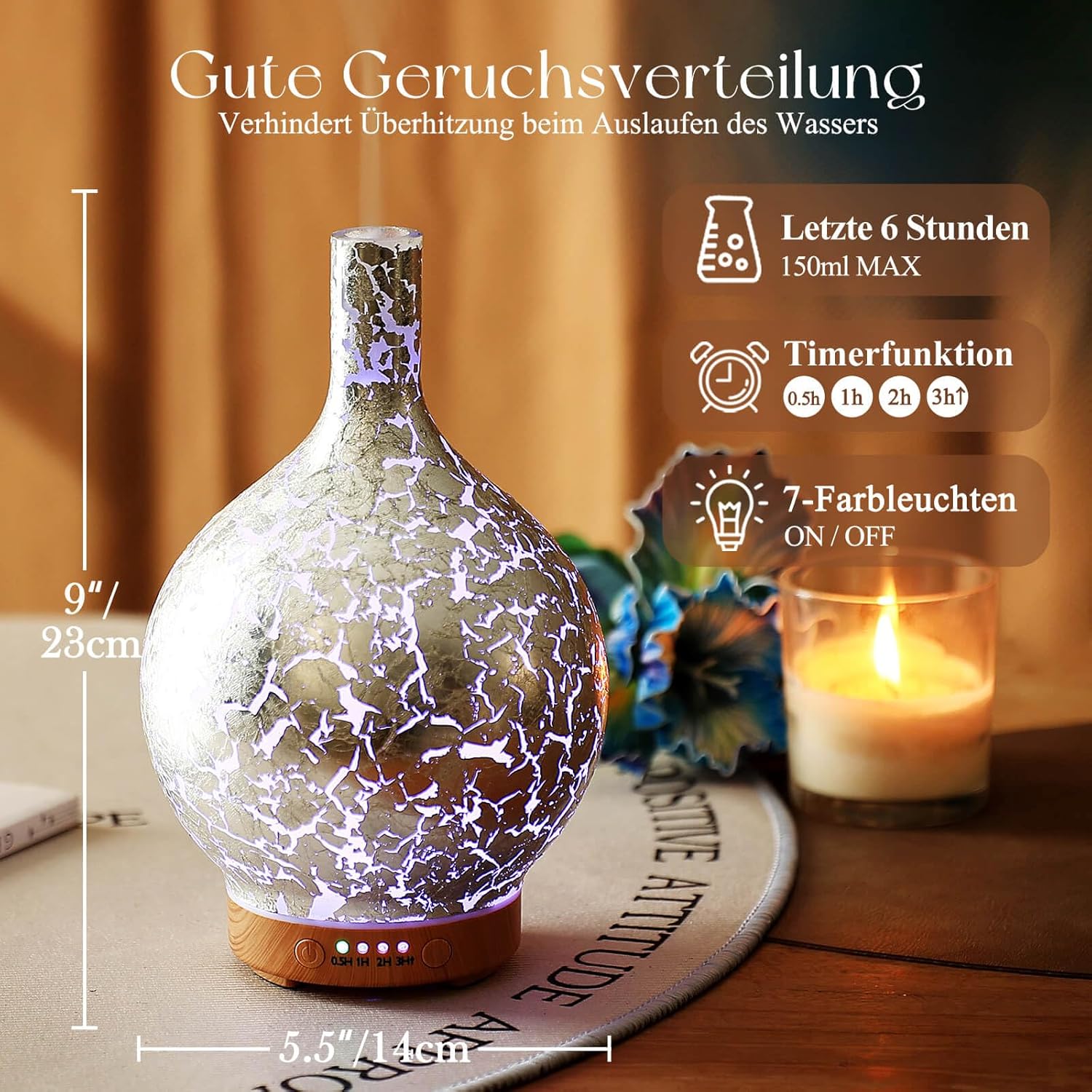 • Елегантна идея за подарък – този дифузерен овлажнител е изработен от специални ръчно изработени стъклени изделия. Независимо дали е пролет, лято, есен или зима, това е най-красивият ви подарък, с който да благодарите!