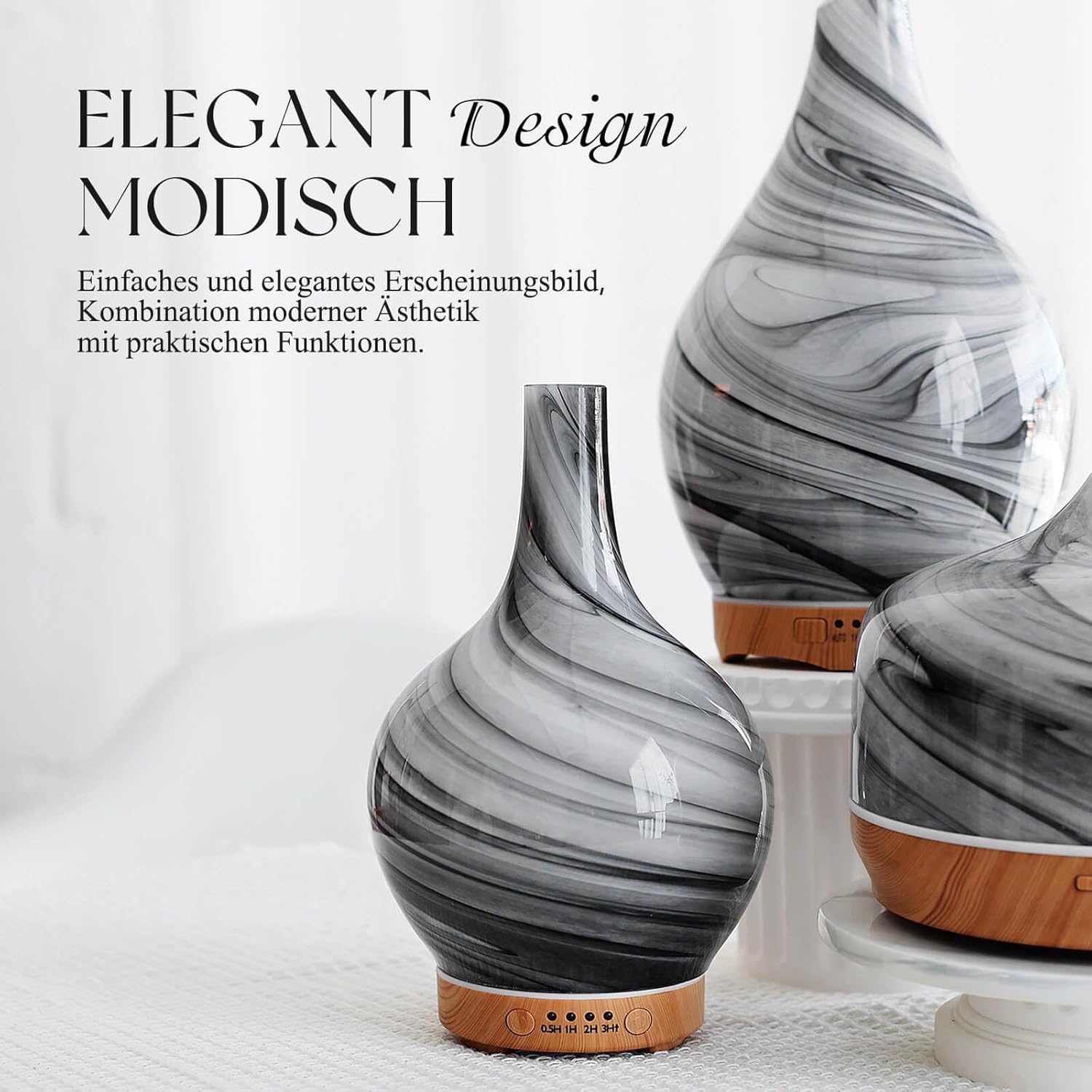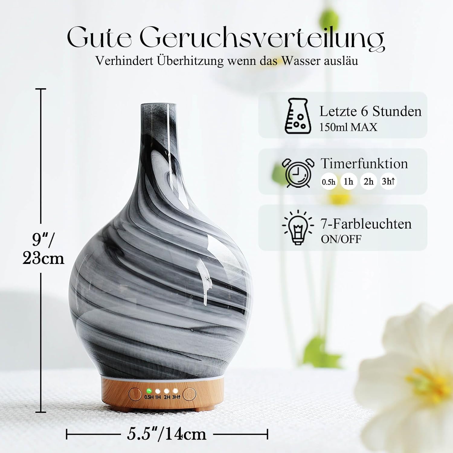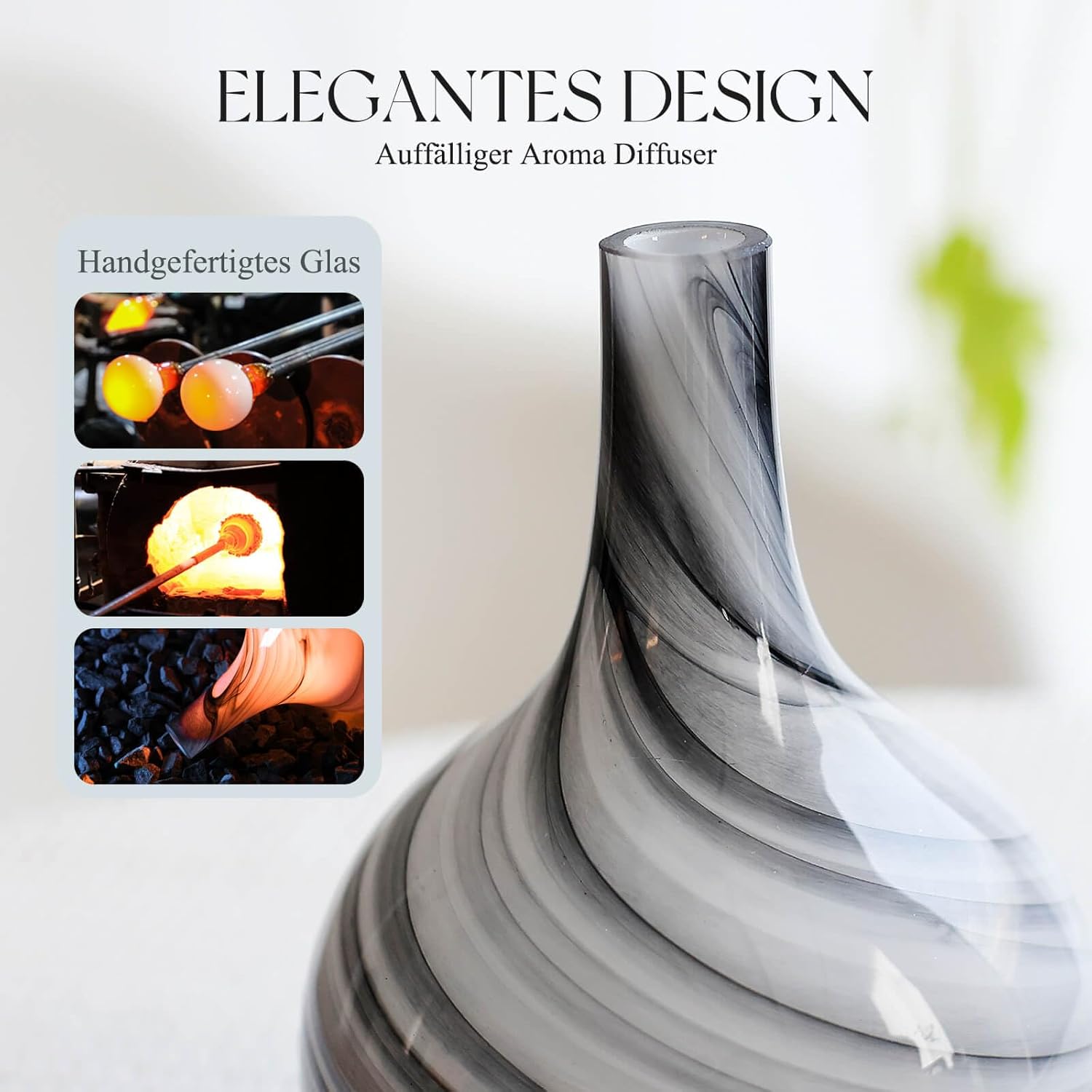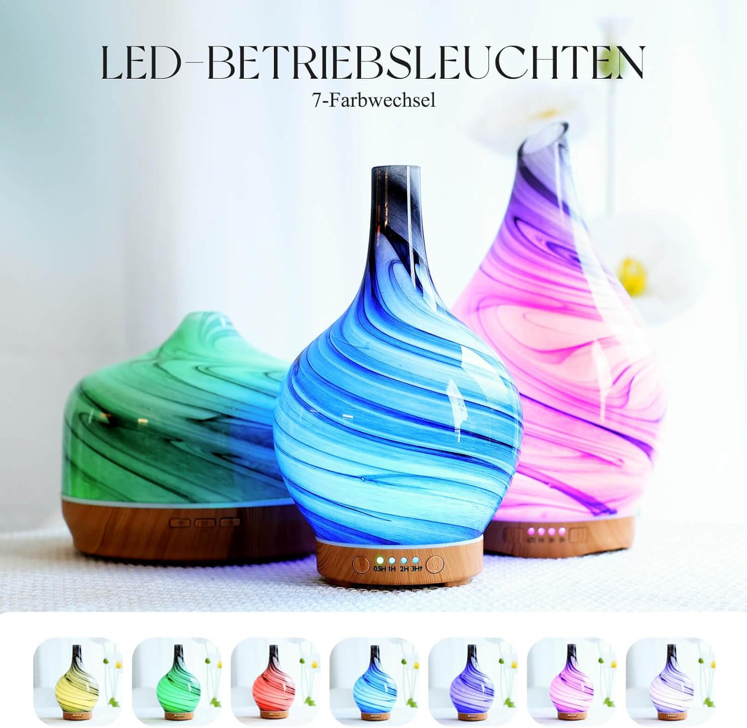 Арома дифузер Porseme, стъклен овлажнител, дифузер, изработен от художествено стъкло, ултразвуков тих, 7 светодиода, променящи цвета си, овлажнител за стая, без BPA за дома, йога, спа с таймер, коледен подарък за жени