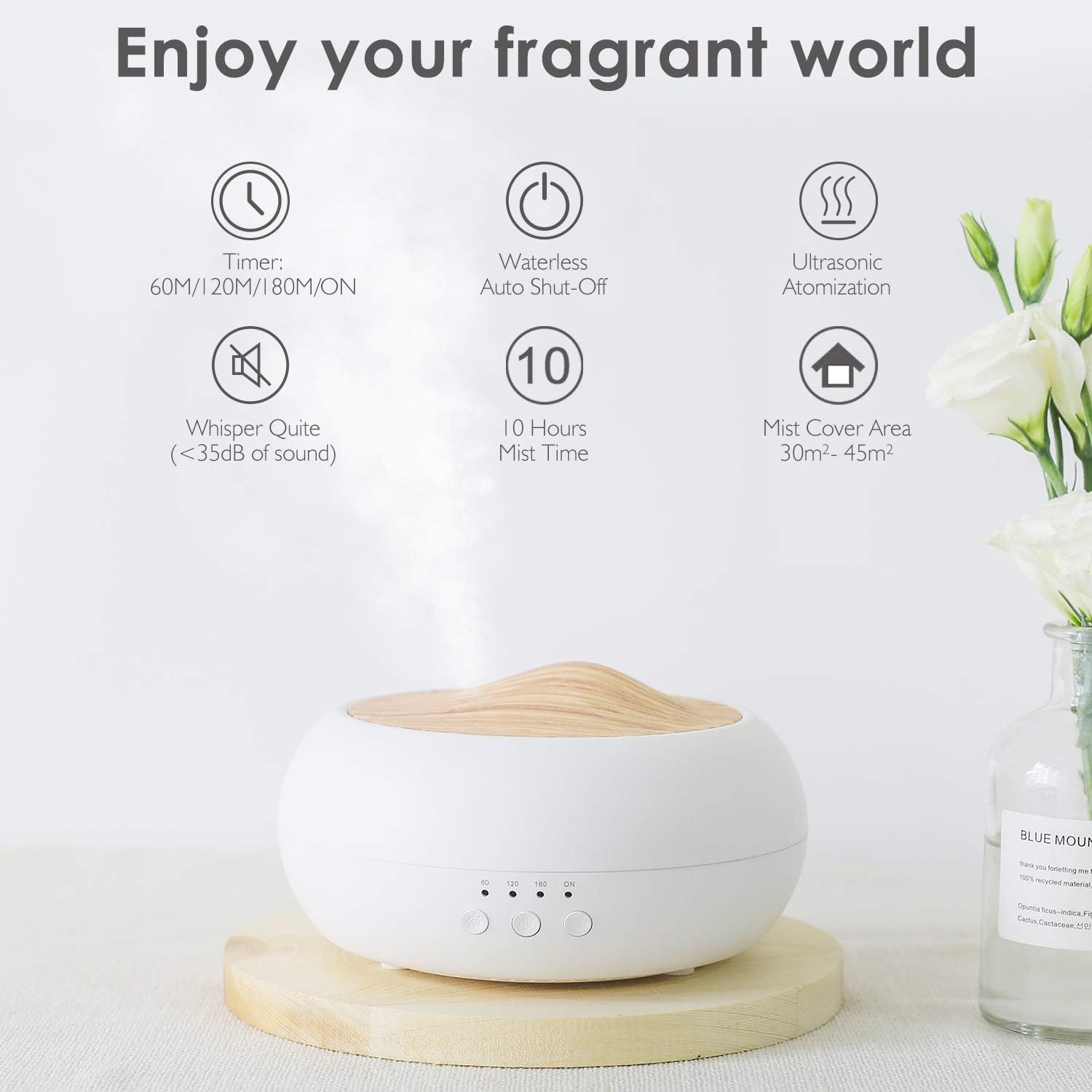 Арома дифузер Salking, 250 мл ултразвуков дифузер за ароматерапия с етерични масла, овлажнител за стая, електрическа ароматна лампа, топла бяла светлина, бял, дървесни шарки, дифузер за дома, офиса или йога