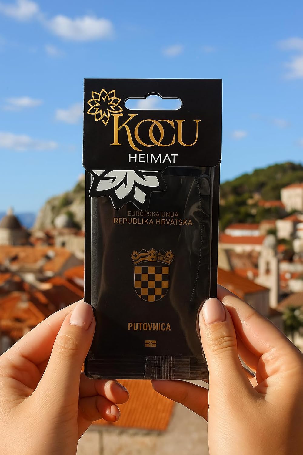 Ароматизаторът за въздух за кола KOCU в ексклузивен паспортен дизайн съчетава стилен дизайн с приятен аромат за вашия автомобил. Вдъхновен от истински паспорти, всяка версия представлява специфична държава и придава на интериора на вашия автомобил уникален, висококачествен вид. Ароматизаторът просто се окачва на огледалото за обратно виждане и осигурява дълготрайно, равномерно освобождаване на аромата. Идеален за всеки, който иска да направи колата си не само свежа, но и уникална. Кънтри изданието е перфектен подарък, колекционерски артикул или лично изявление - независимо дали за вашата собствена кола или за приятели и семейство. Висококачествената изработка, модерният дизайн и приятният аромат правят освежителя за въздух KOCU специален аксесоар за всеки автомобил.